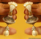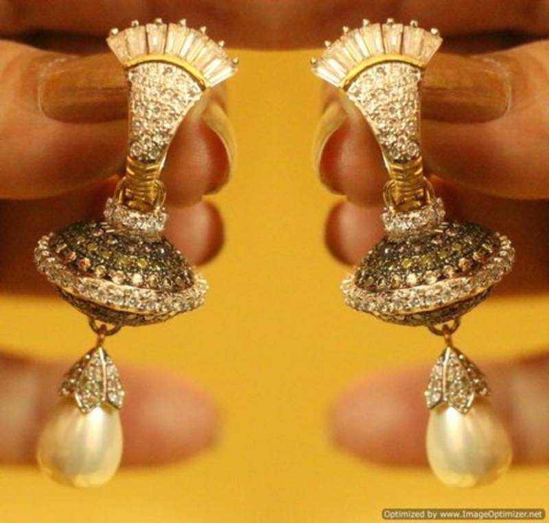 These diamond look danglers are handcrafted in silver alloy with imitation pearl & cz stones of very fine quality. These earrings are plated in 18kt gold rhodium plating which gives the design a real jewelry look .