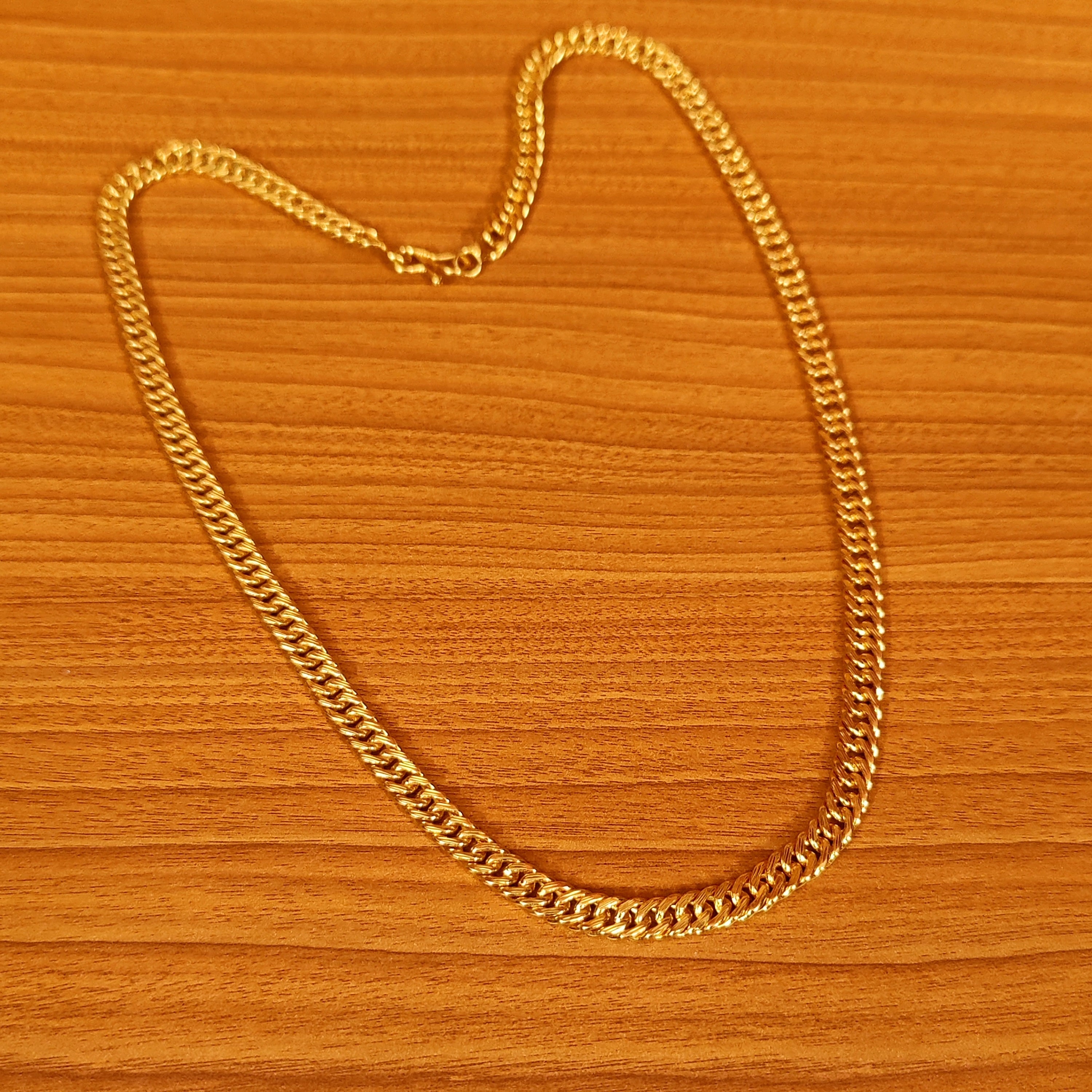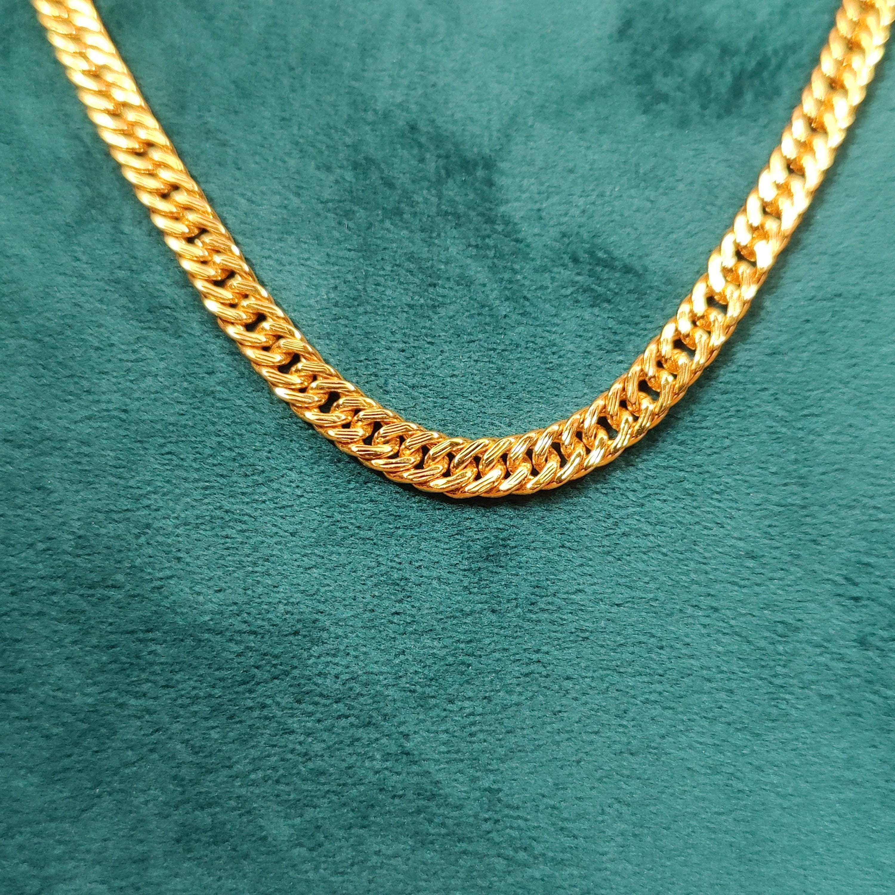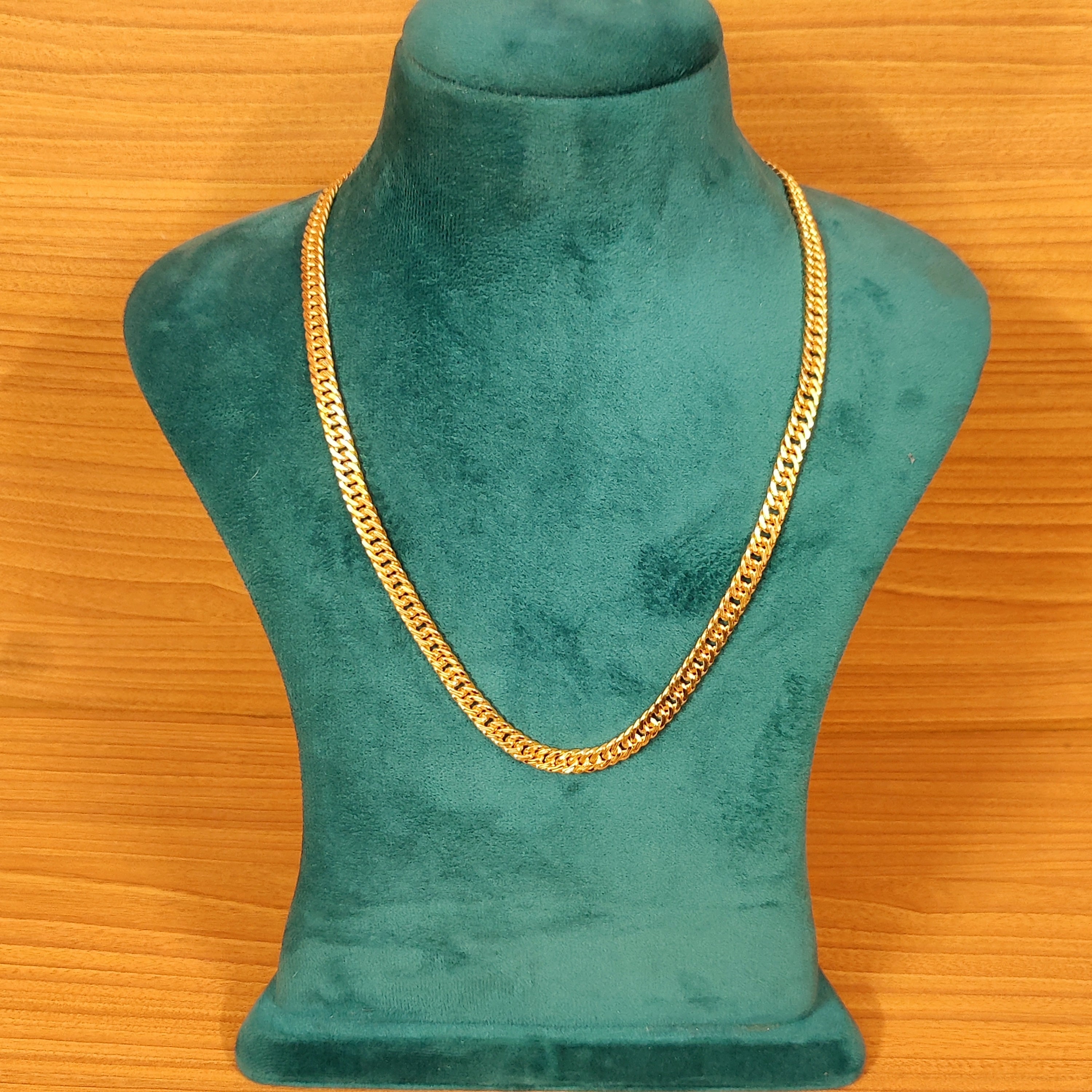 This gold look pattern men's chain is handcrafted in copper alloy with 18kt gold rhodium plating to give it a real gold look .