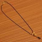 This mangalsutra necklace is handcrafted in copper alloy with fine black chain and gold ball motifs . Its an ethnic mangalsutra design plated in 18kt gold plating.