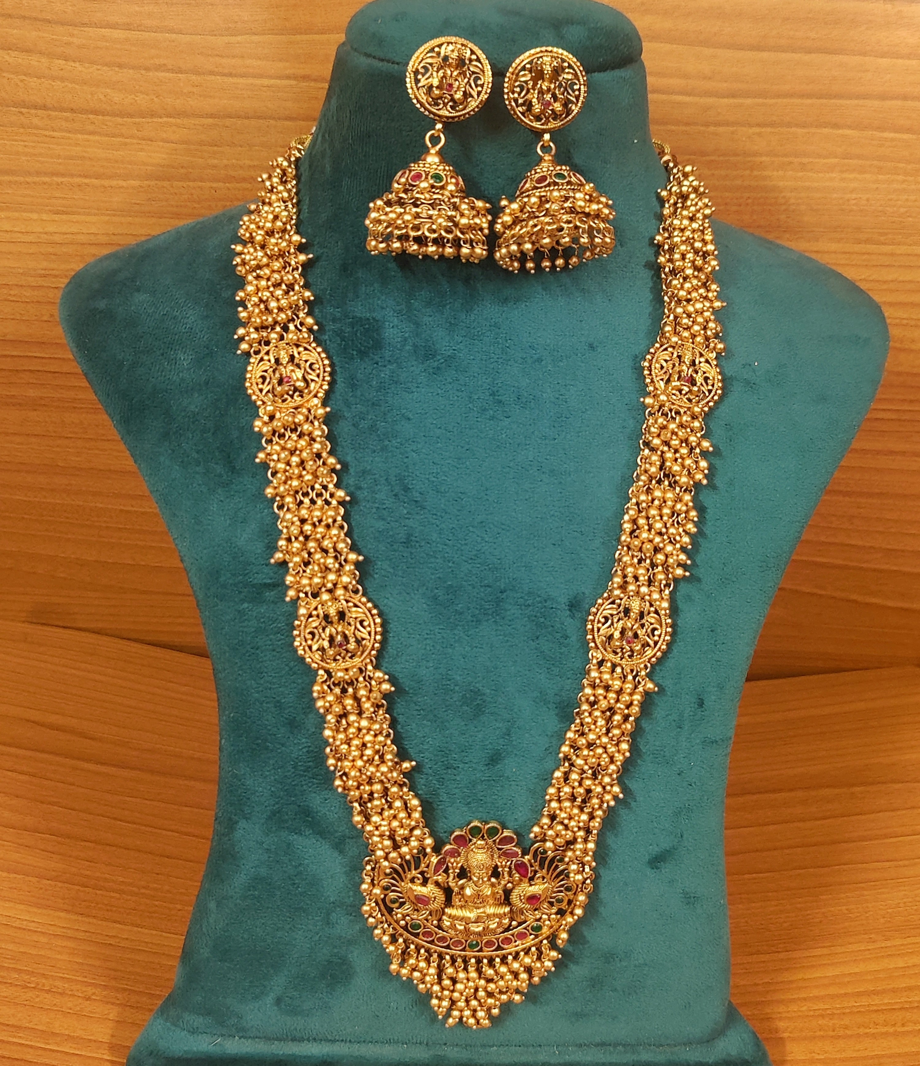 GOLD LOOK LONG HARAM TEMPLE NECKLACE SET