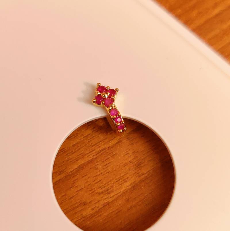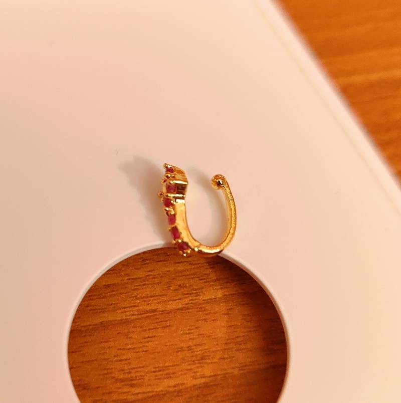 This Beautiful Nose Ring Is Handcrafted In Brass Alloy With Imitation Red Colour Stone Of Very Fine Quality . The Nose Ring Is Very Intricate And Very Light In Weight And Is Plated In 18kt Gold Plating As Done On The Real Gold Jewellery.