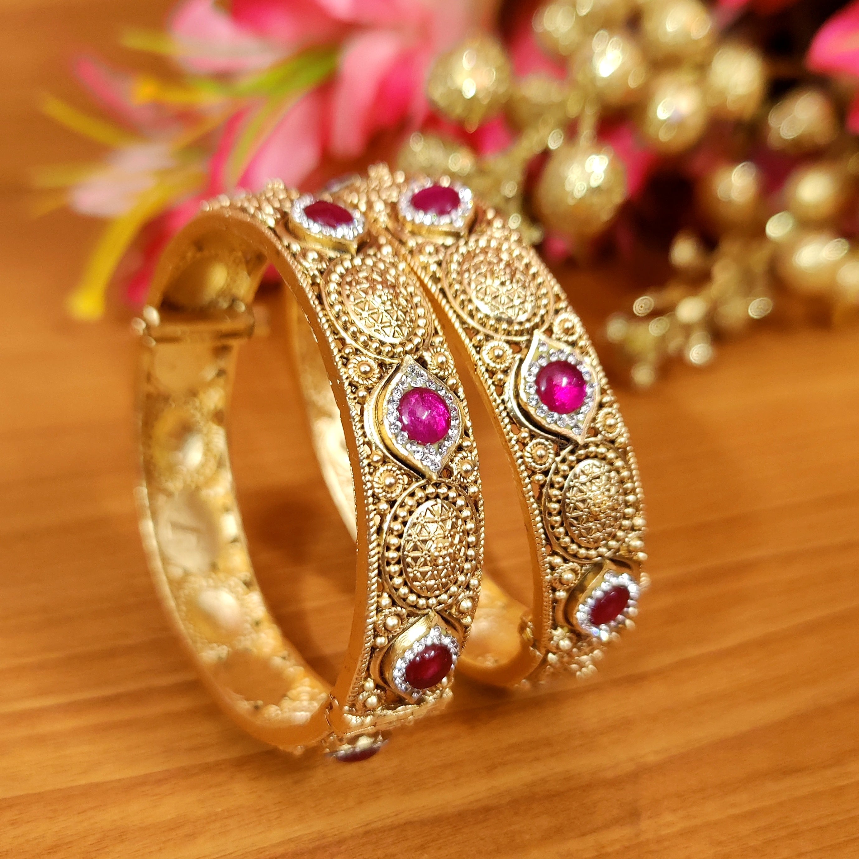 GOLD PLATED CZ RAJWADI POLISH OPENABLE BANGLES