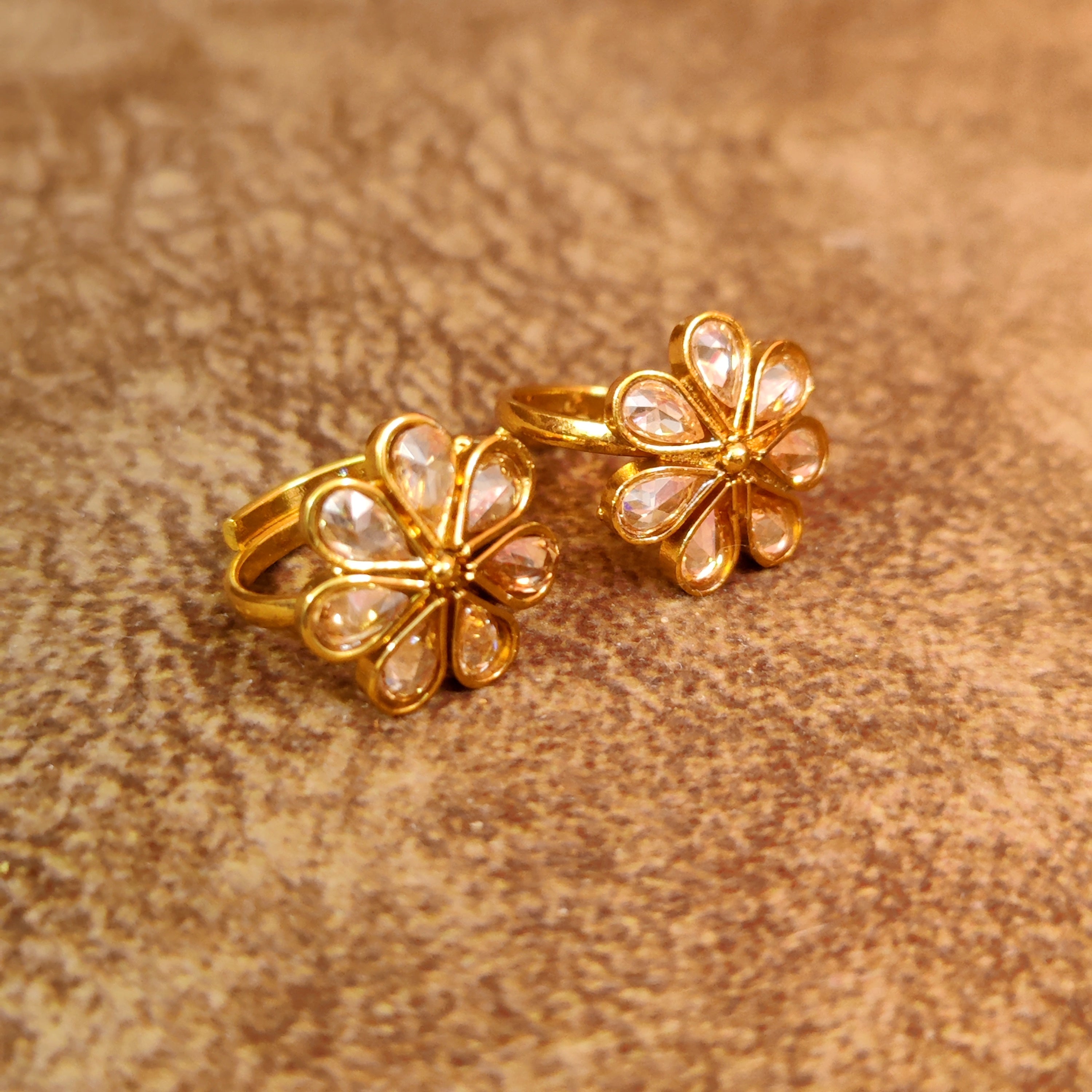 Enhance your feet with the sparkle of these Gold Plated CZ Studded Adjustable Toe Rings. Featuring a luxurious gold-plated finish and dazzling CZ stones, these toe rings add a touch of elegance to any look. The adjustable design ensures a comfortable fit, making them perfect for both everyday wear and festive occasions. A must-have for those who love minimal yet stylish jewelry. Shop now and add timeless beauty to your collection!
