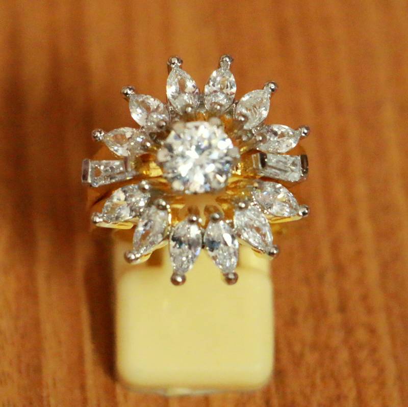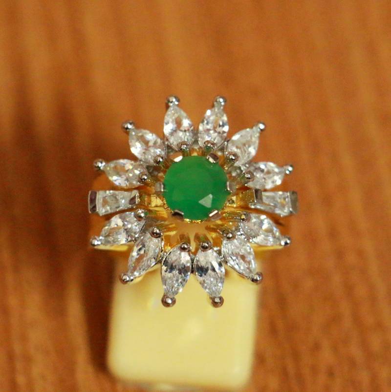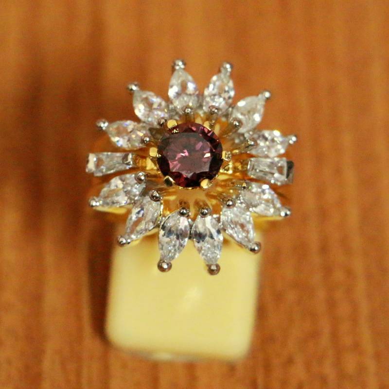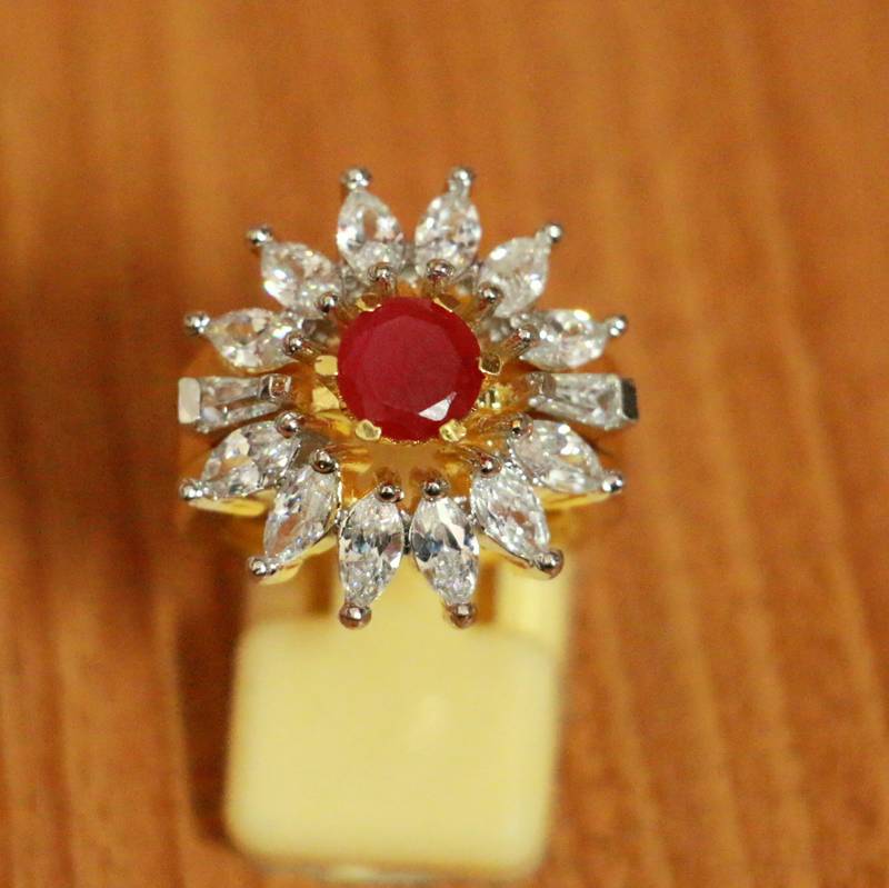 This Beautiful Ring Is Handcrafted In Brass Alloy With Imitation Ruby & American Diamond Of Very Fine Quality . This Ring Coated With 18kt Gold Polish Which Give Them A Unique Look . An Absolutely Stunning Piece To Own And Are Very Light In Weight.