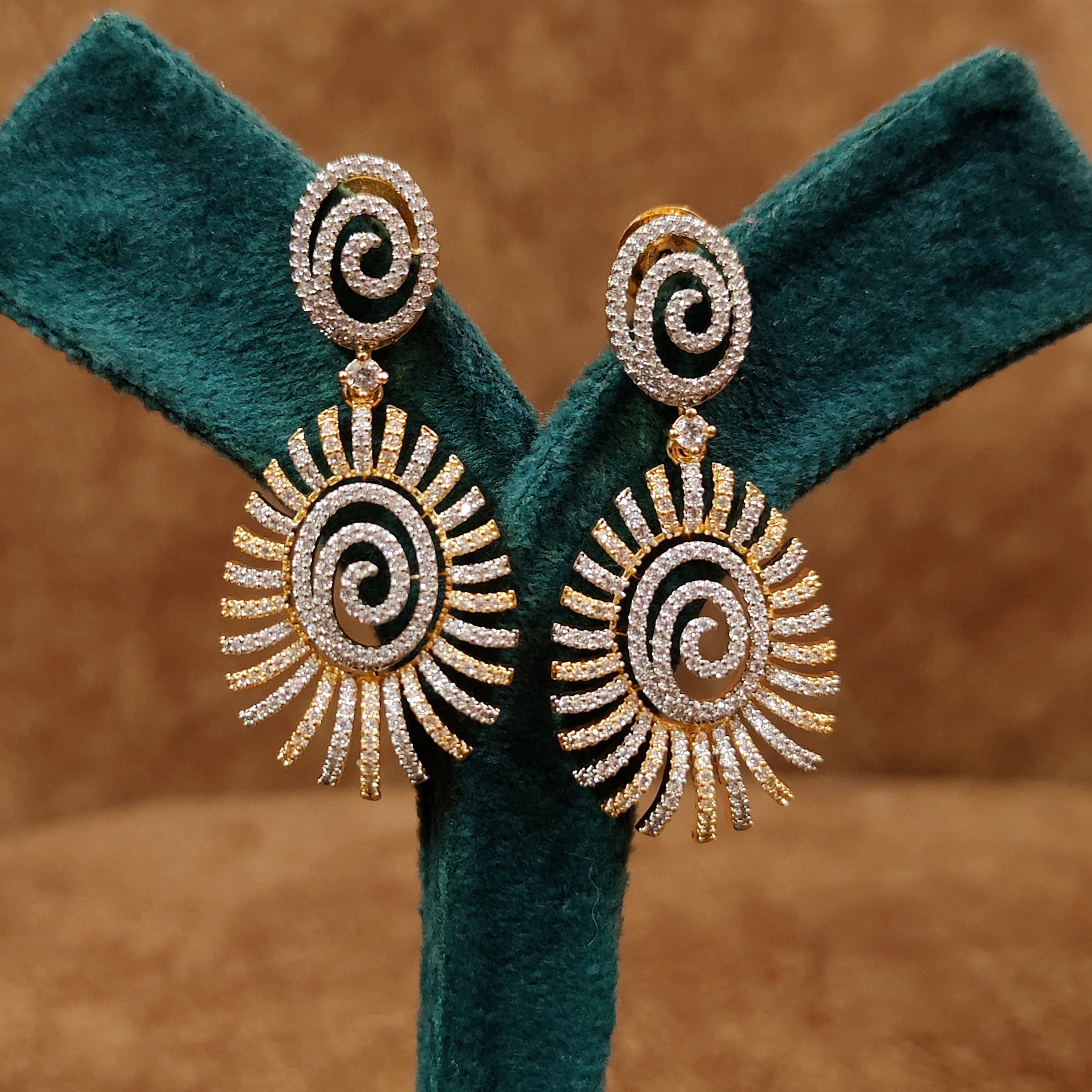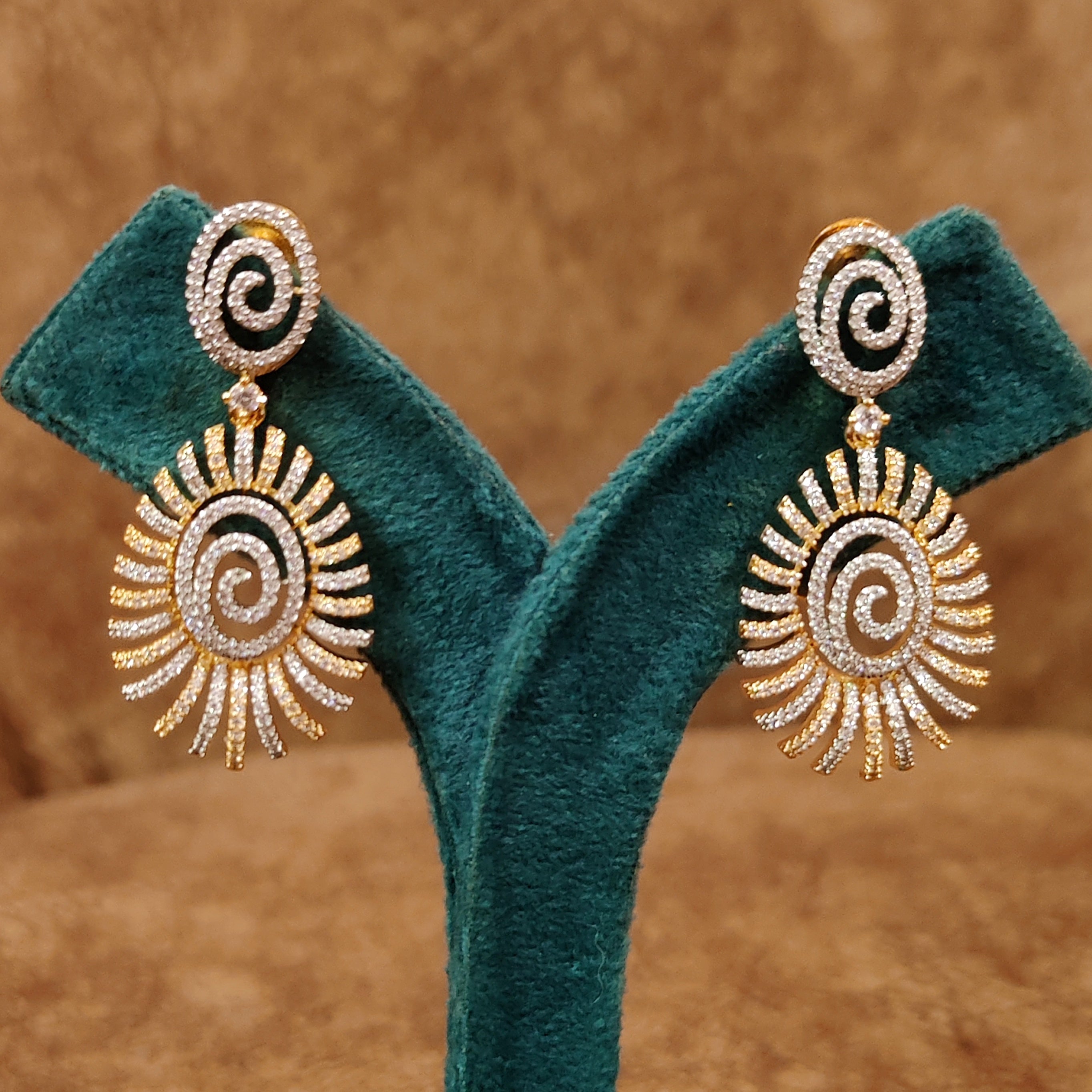 These diamond look Danglers are handcrafted in silver alloy with imitation cz signity stones which are of the finest quality of american diamond. These medium sized party wear earrings are handcrafted with fine finishihng and plated with real 22kt fine nickel free white gold rhodium that gives a real diamond look to the design.