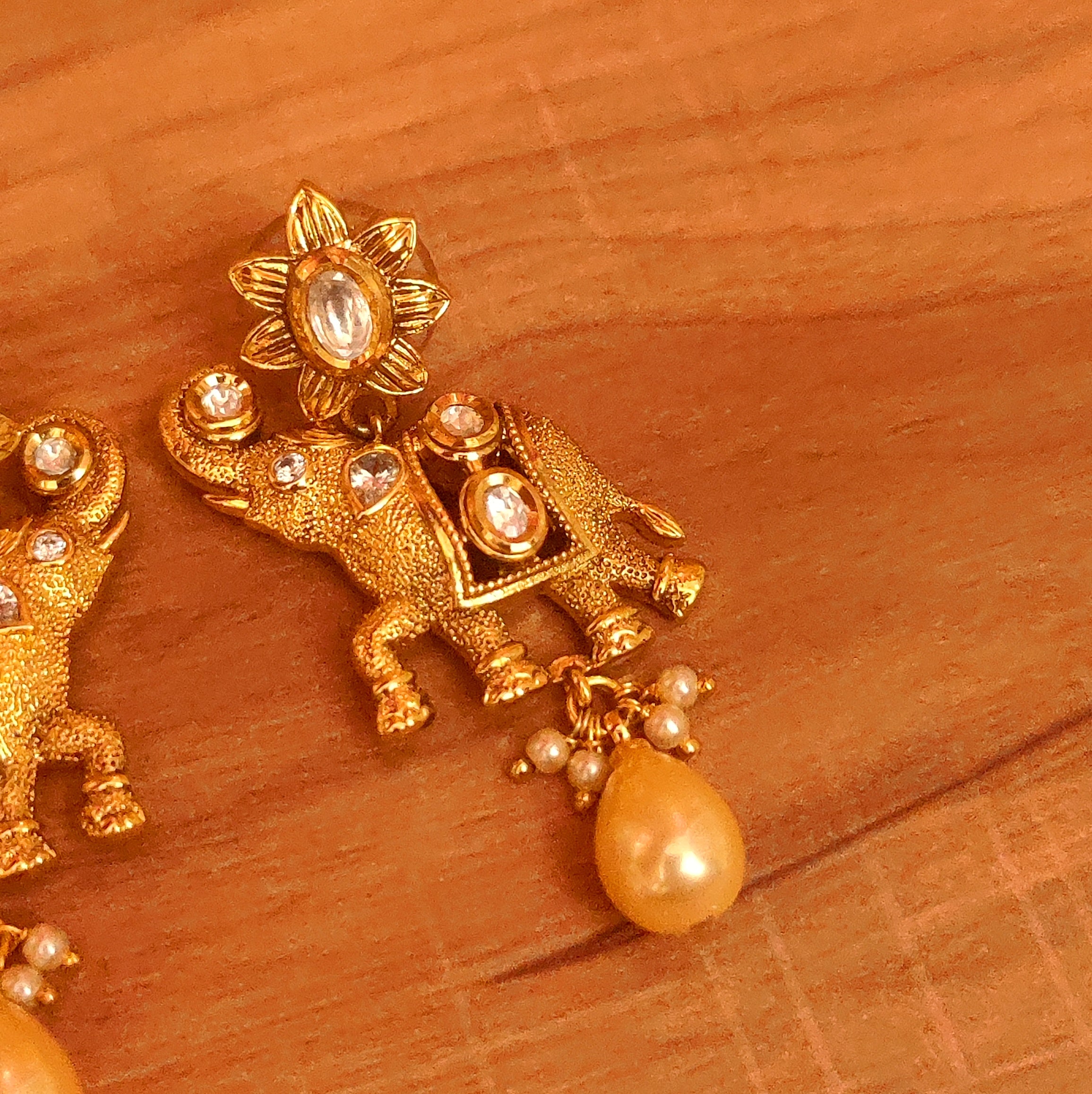 GOLD PLATED KUNDAN LOOK ROYAL ELEPHANT EARRINGS