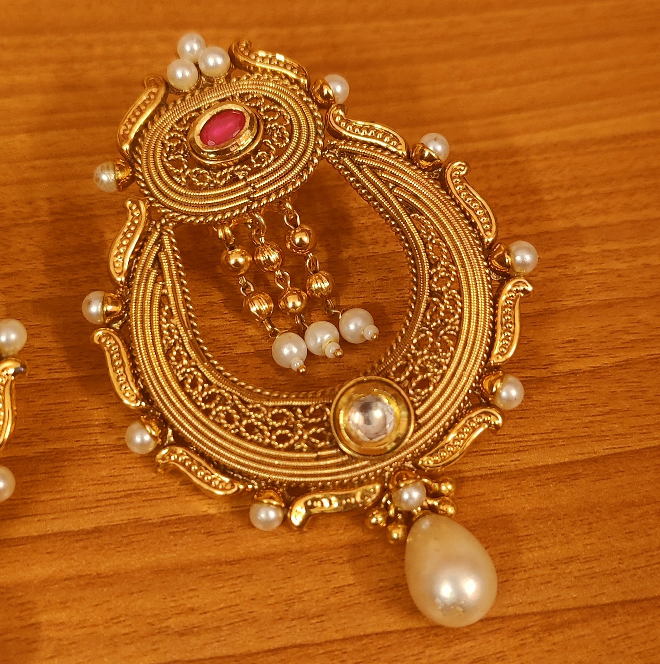 GOLD PLATED KUNDAN LOOK RUBY CHAANDBAALI