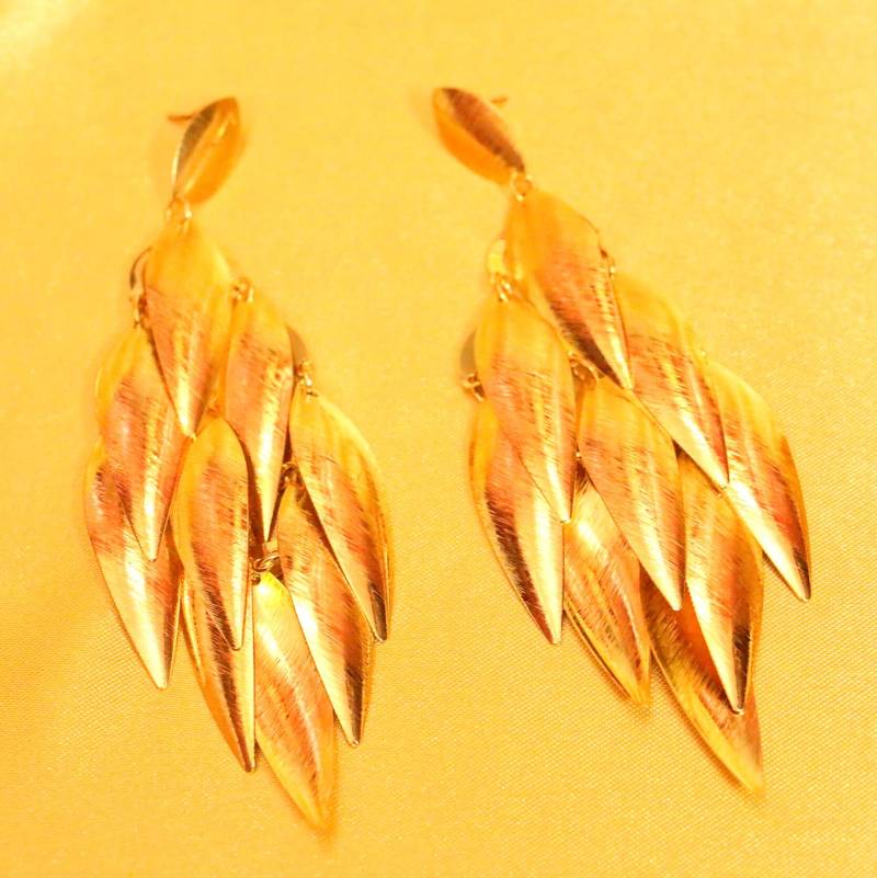 These beautiful earrings are handcrafted in brass alloy work of very fine quality. These earrings are coated with gold polish which give them a unique look . An absolutely stunning piece to own and are very light in weight.