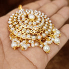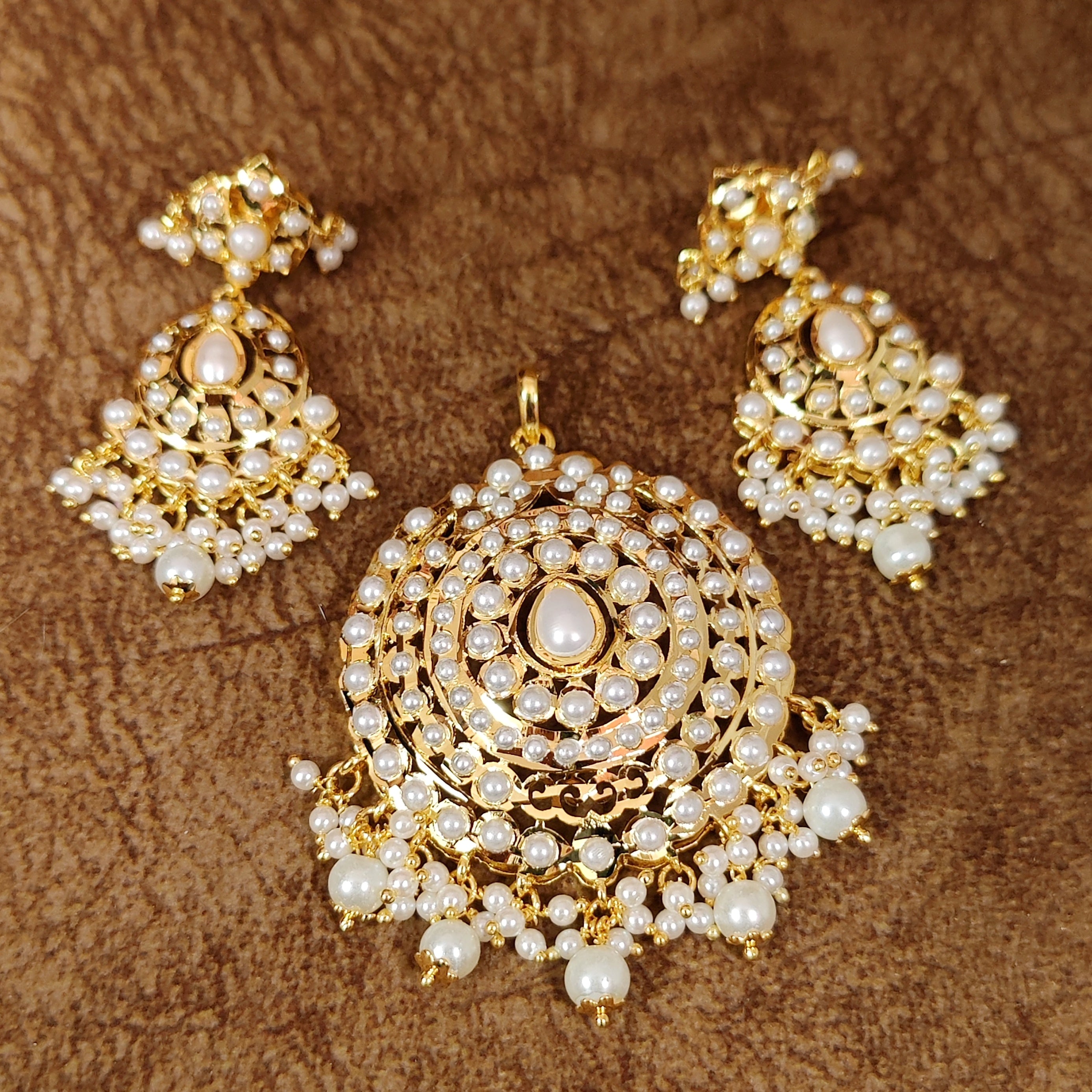 Enhance your jewelry collection with the Gold-Plated Real Look Semi-Precious Pearl Pendant Set, a blend of elegance and timeless design. This stunning pendant set features semi-precious stones and delicate pearls, meticulously crafted to replicate the charm of real gold jewelry. Complemented by matching earrings, its intricate details and luxurious gold-plated finish make it the perfect accessory for weddings, festive occasions, and traditional celebrations.