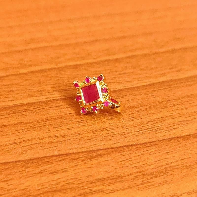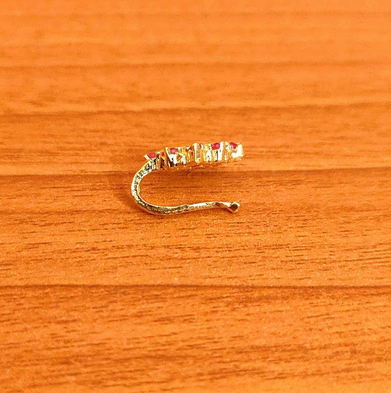 This Beautiful Nose Ring Is Handcrafted In Brass Alloy With Imitation Red Colour Stone Of Very Fine Quality . The Nose Ring Is Very Intricate And Very Light In Weight And Is Plated In 18kt Gold Plating As Done On The Real Gold Jewellery.