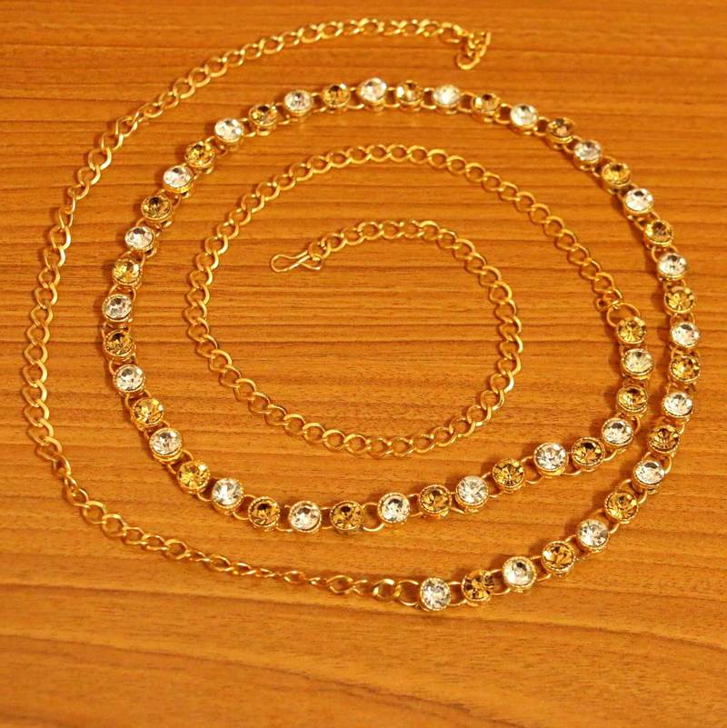 GOLD PLATED ZIRCON STUDDED ADJUSTABLE WAIST BELT
