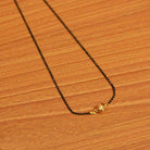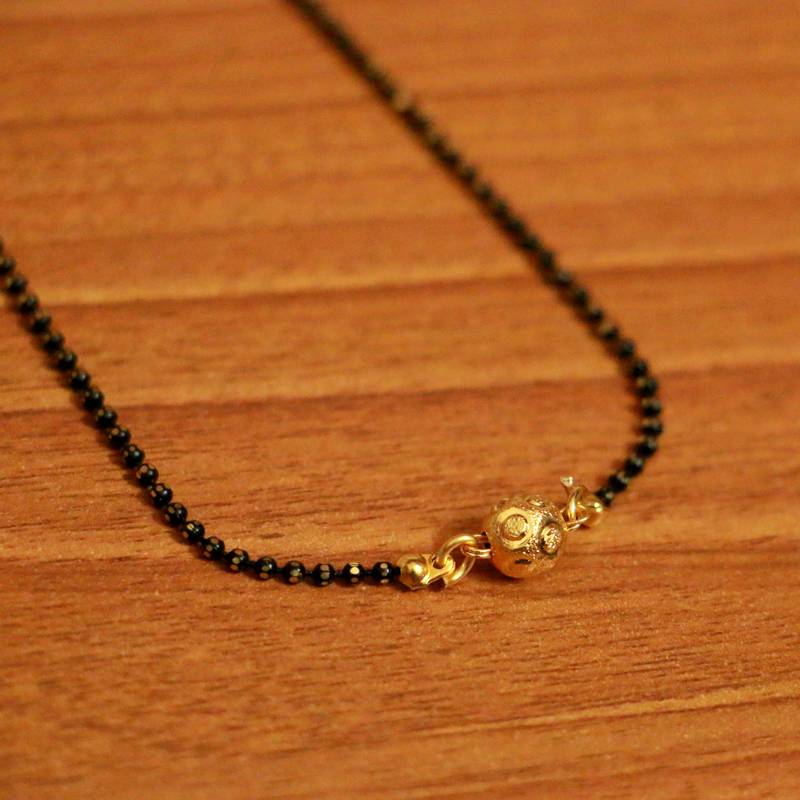 This mangalsutra necklace is handcrafted in copper alloy with fine black chain and gold ball motifs . Its an ethnic mangalsutra design plated in 18kt gold plating.