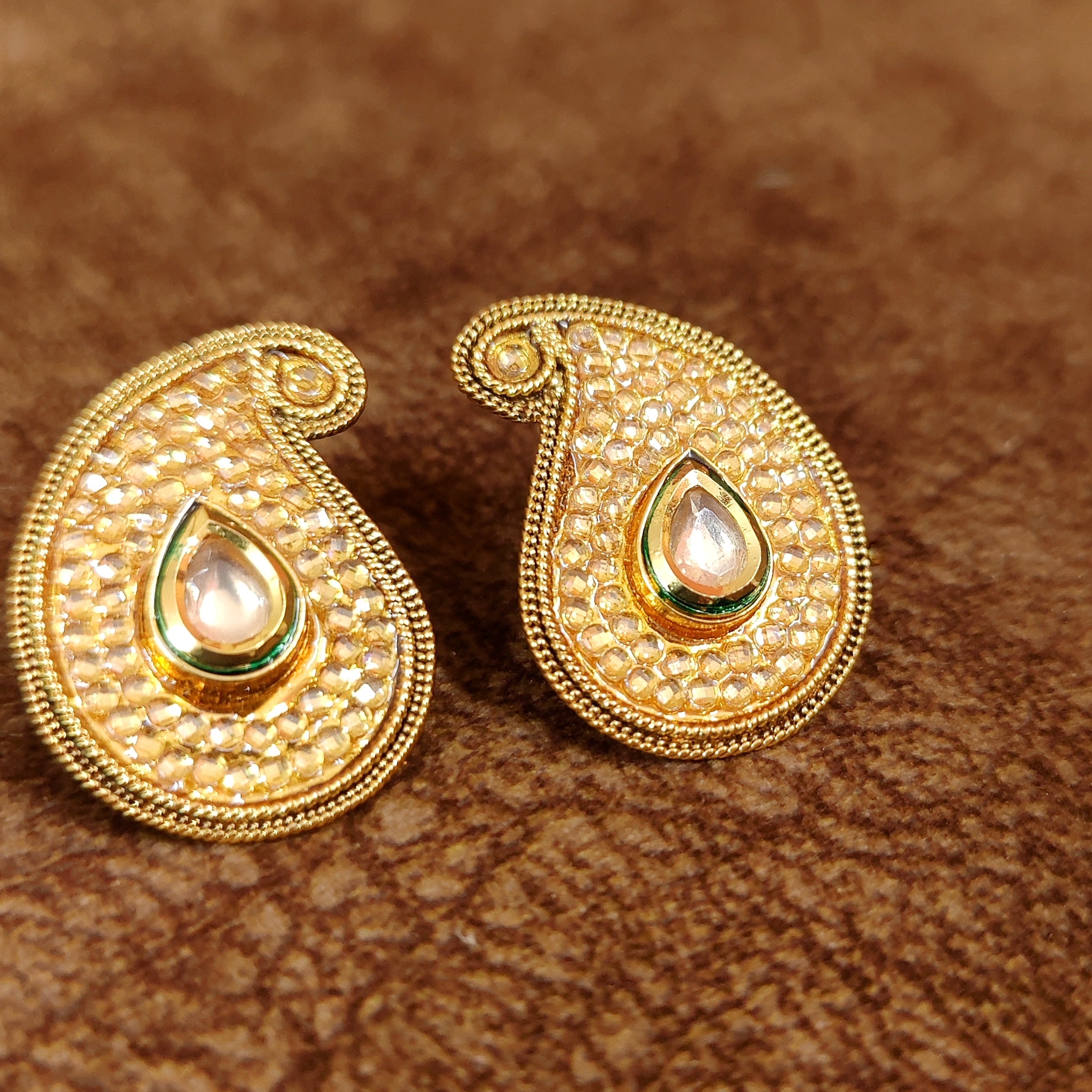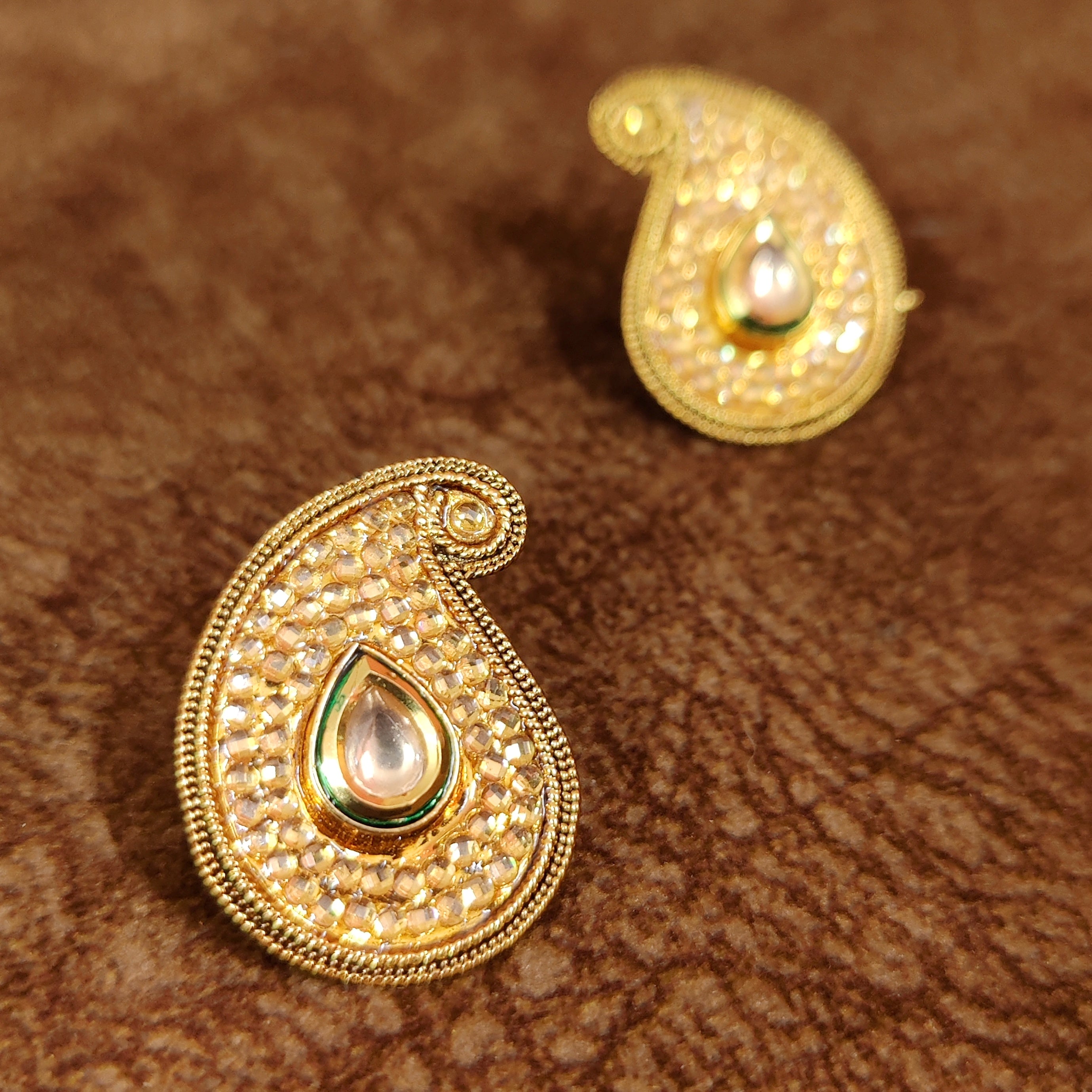GOLDEN STONE KUNDAN PAISLEY STUDS
