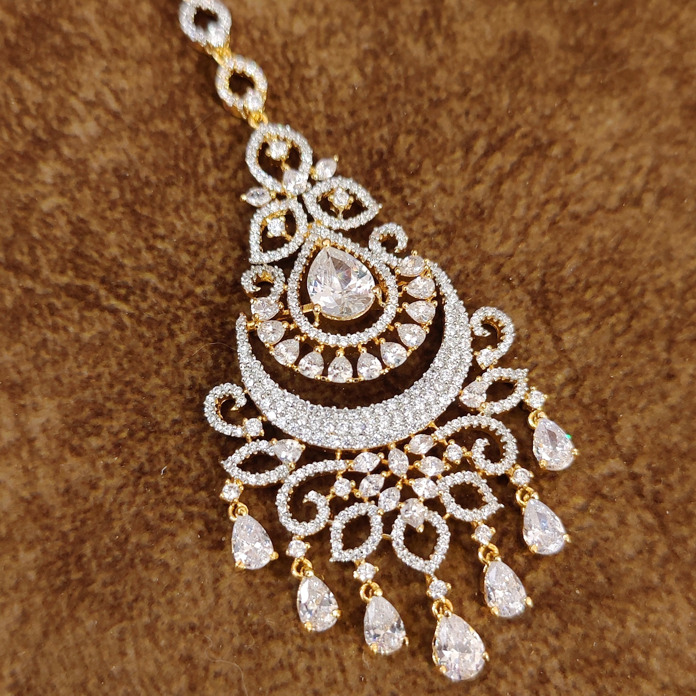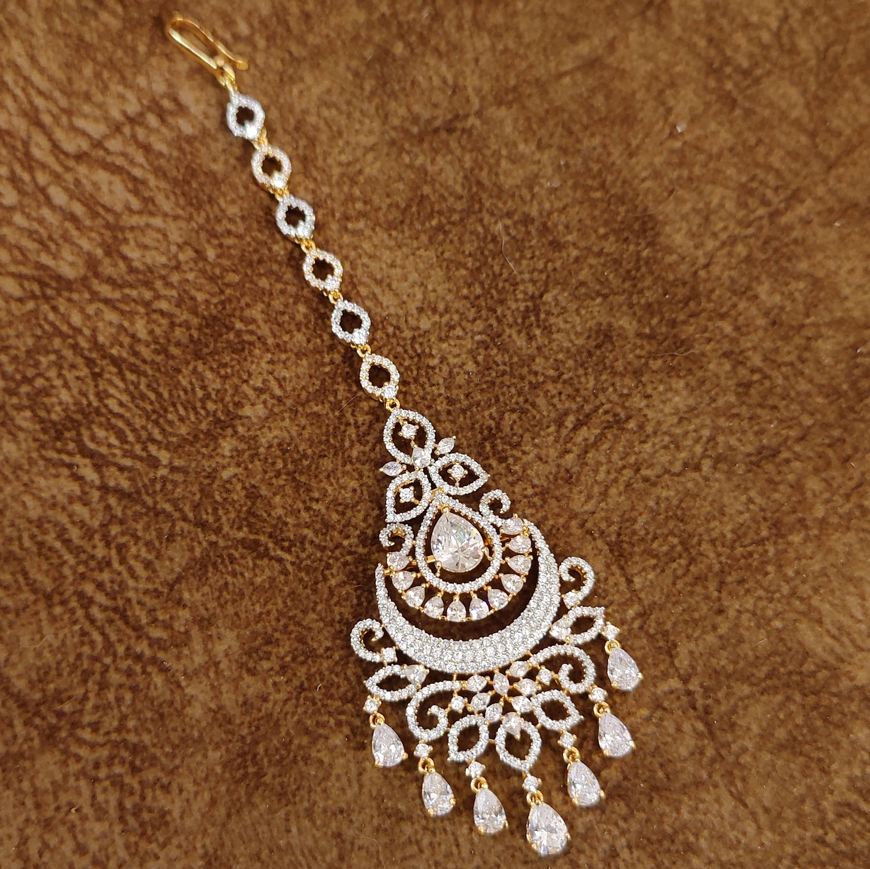 GORGEOUS GOLD PLATED DIAMOND LOOK BRIDAL MAANG TIKKA