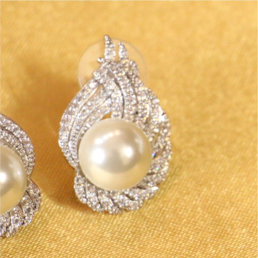 These beautiful Earrings are handcrafted in silver alloy with imitation american diamond,pearl and semi precious stones of very fine quality. These earrings are coated with 18 kt gold polish which give them a unique look . An absolutely stunning piece to own and are very light in weight.