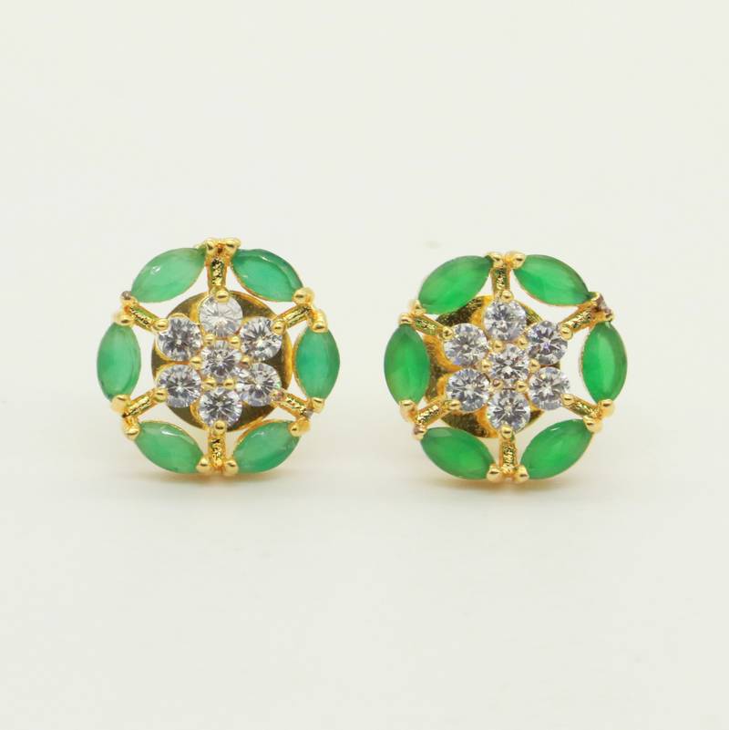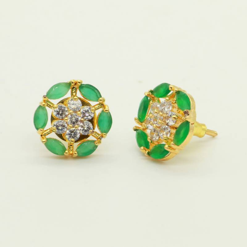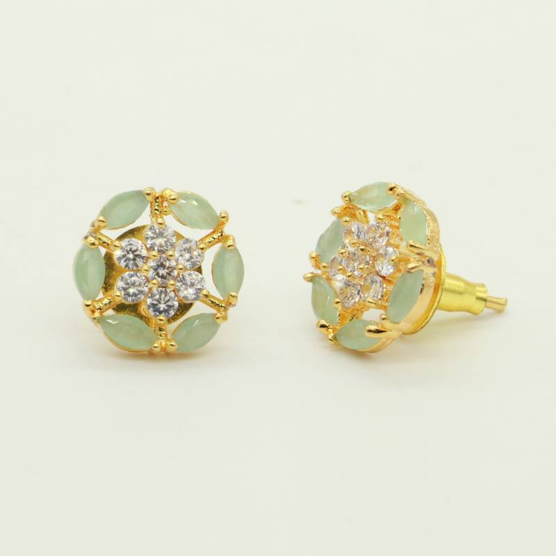 These Studs Are Handcrafted In Silver Alloy With Imitation Sea Green Colour & Stones Cz Stone Of Very Fine Quality. These Artistic Yet Modern Studs Are Plated With High Quality Nickel Free Gold Rhodium. The Earrings Are Very Light In Weight.