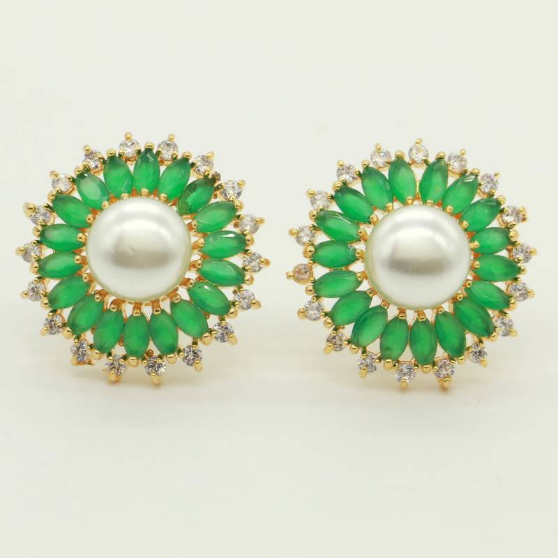 These Studs Are Handcrafted In Silver Alloy With Imitation Emerald Colour Stones & Cz Stone And Pearl Of Very Fine Quality. These Artistic Yet Modern Studs Are Plated With High Quality Nickel Free Gold Rhodium. The Earrings Are Very Light In Weight.