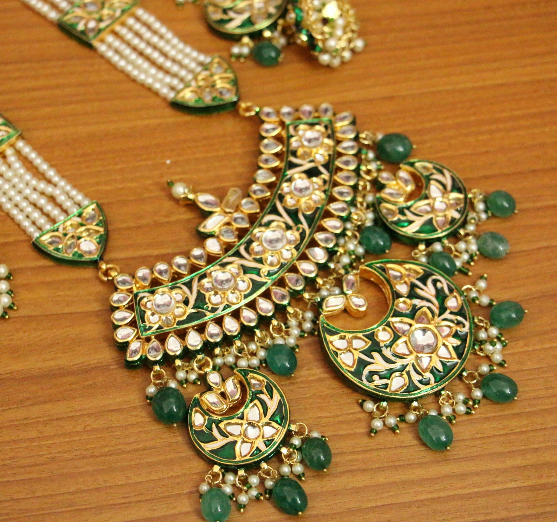 Green Kundan Meenakari & Pearl Long Necklace Set