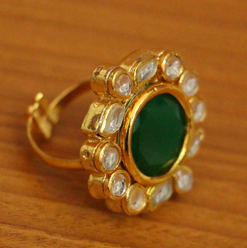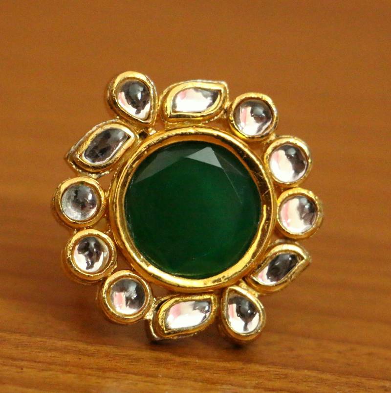 This Kundan Polki Ring Is Handcarfted In Brass Alloy With Imitation Green Onyx Colour Of Very Fine Quality , The Ring Is Light In Weight And Plated With 18kt Gold Rhodium To Give It A Real Gold Look.