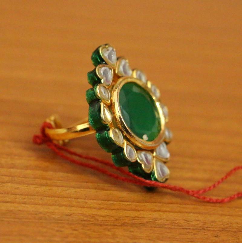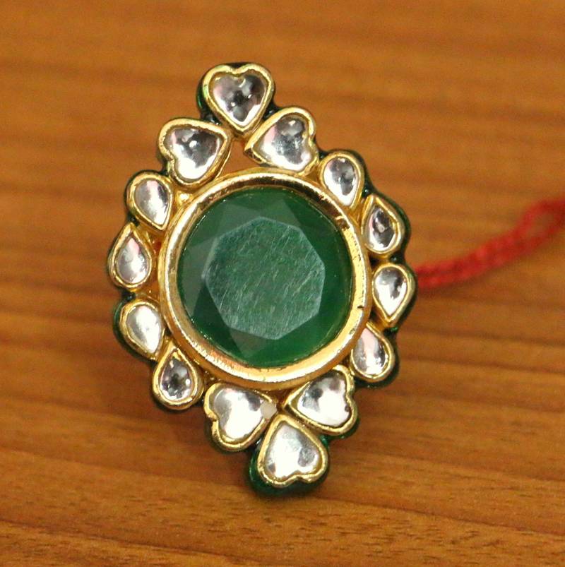 This Kundan Polki Ring Is Handcarfted In Brass Alloy With Imitation Green Onyx & Meenakari Work Of Very Fine Quality , The Ring Is Light In Weight And Plated With 18kt Gold Rhodium To Give It A Real Gold Look.