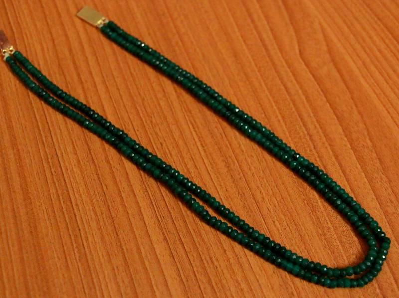 This beautiful necklace is handcrafted in brass alloy with imitation green onyx bead work of very fine quality . This neckace is coated with 18 kt gold polish which give them a unique look . An absolutely stunning piece to own and are very light in weight.