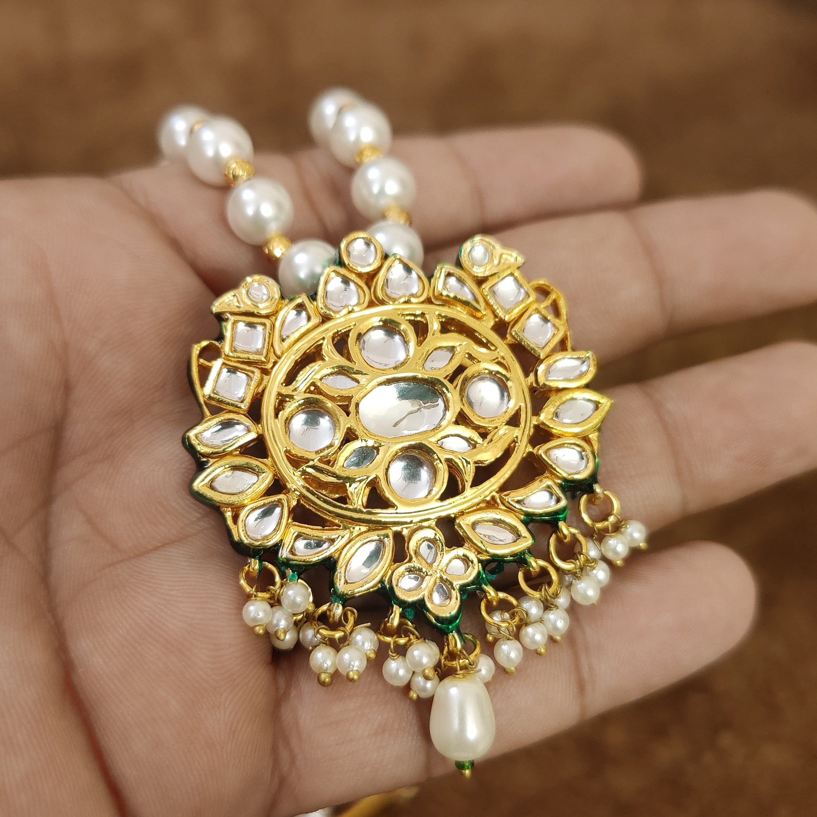 Elevate your royal charm with our Emerald Green Royal Bikaneri Kundan Polki Set. Adorned with rich emerald green stones and intricate Kundan Polki work, this set reflects timeless elegance and regal allure. Perfect for weddings, festive celebrations, and grand occasions — this masterpiece will make you feel like royalty. Make a statement that lasts a lifetime!