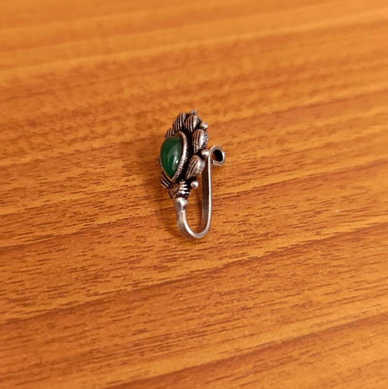 This Beautiful Nose Ring Is Made In 92.5 Sterling Silver With Semi Precious Green Onyx .