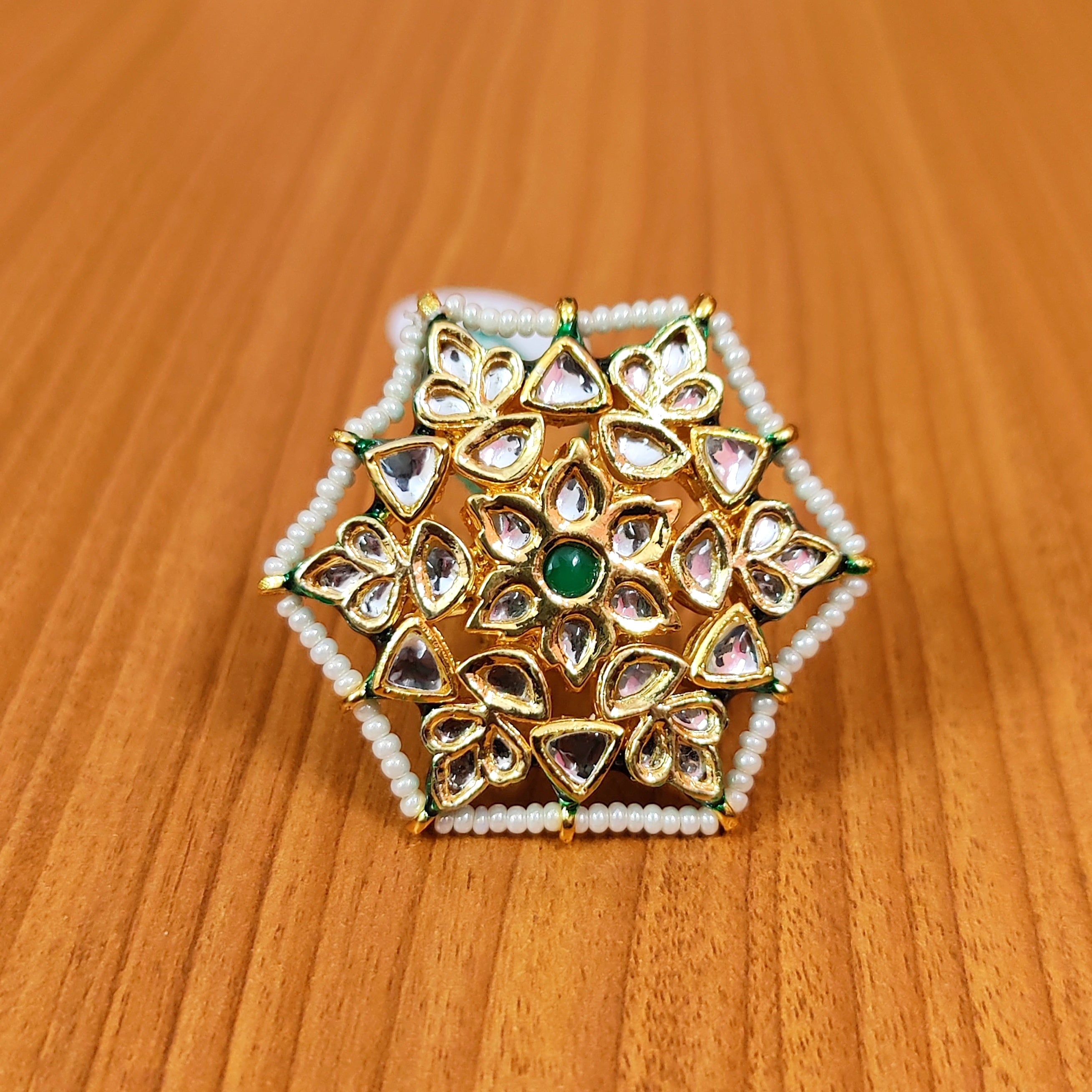 GREENKUNDAN MEENAKARI ADJUSTABLE COCKTAIL RING