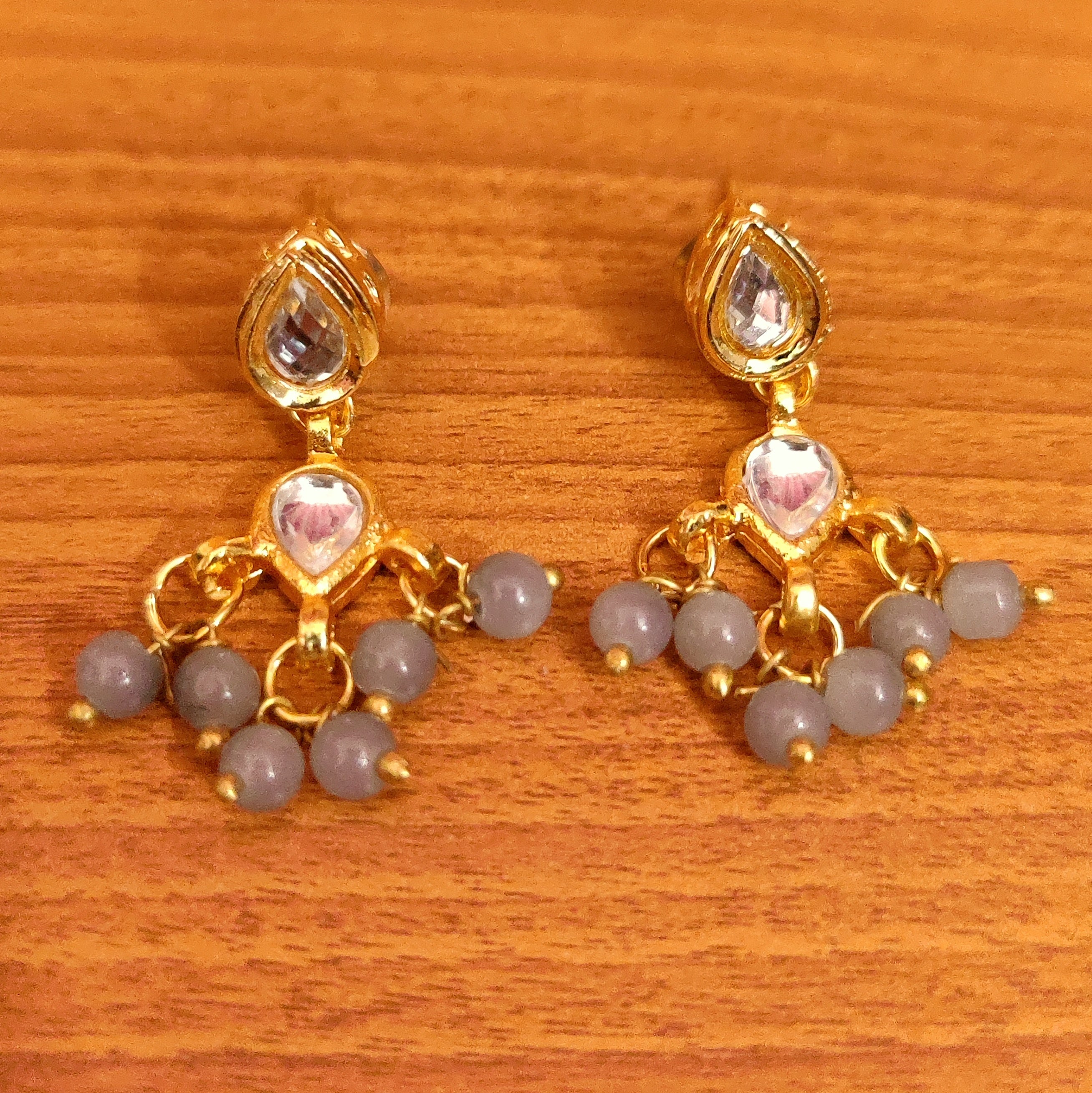 GREY PEAR SHAPED KUNDAN POLKI EARRINGS