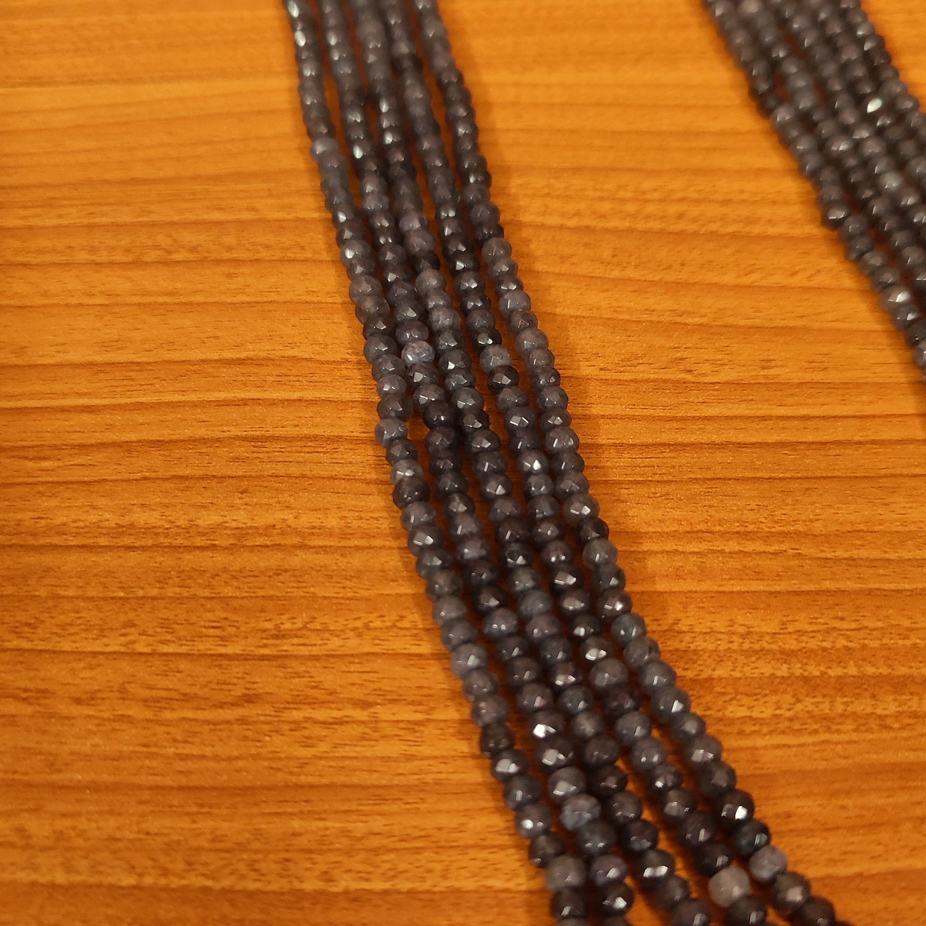 GREY QUARTZ 4MM BEADS SEMI PRECIOUS 5 LAYERED NECKLACE