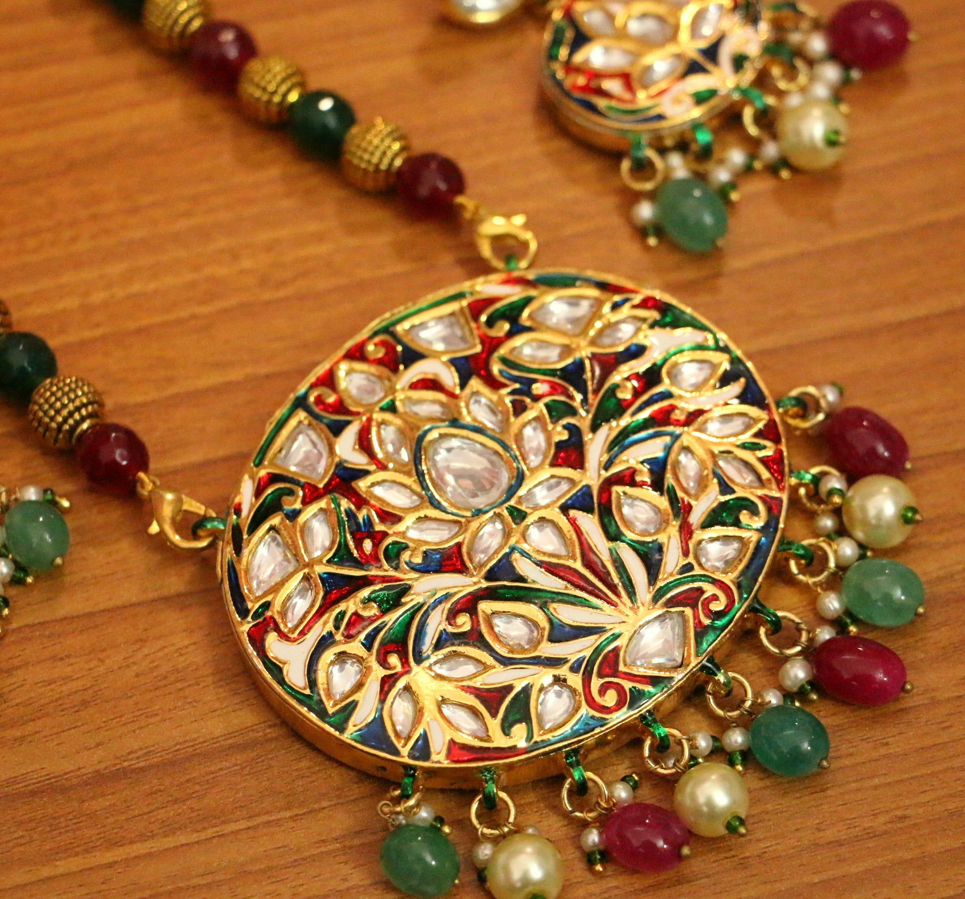 Handcrafted Uncut Kundan meenakari Oval Necklace Set