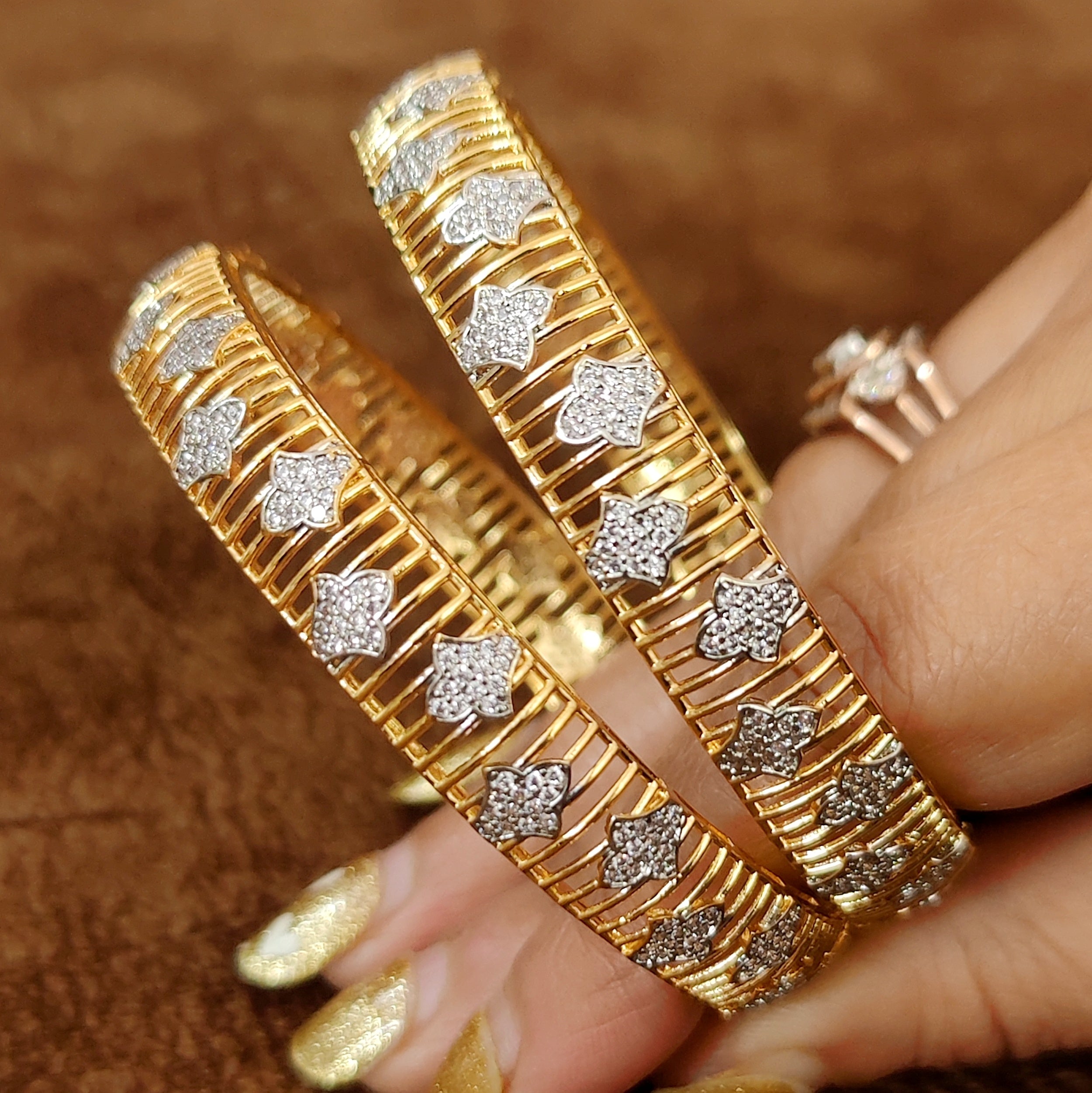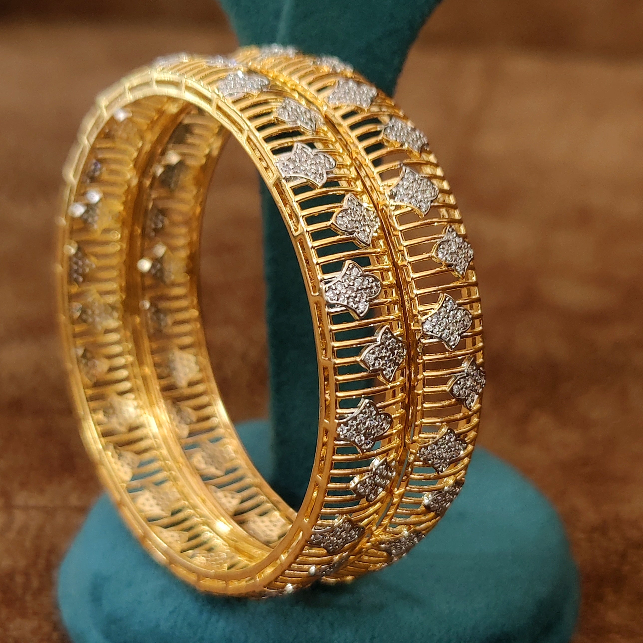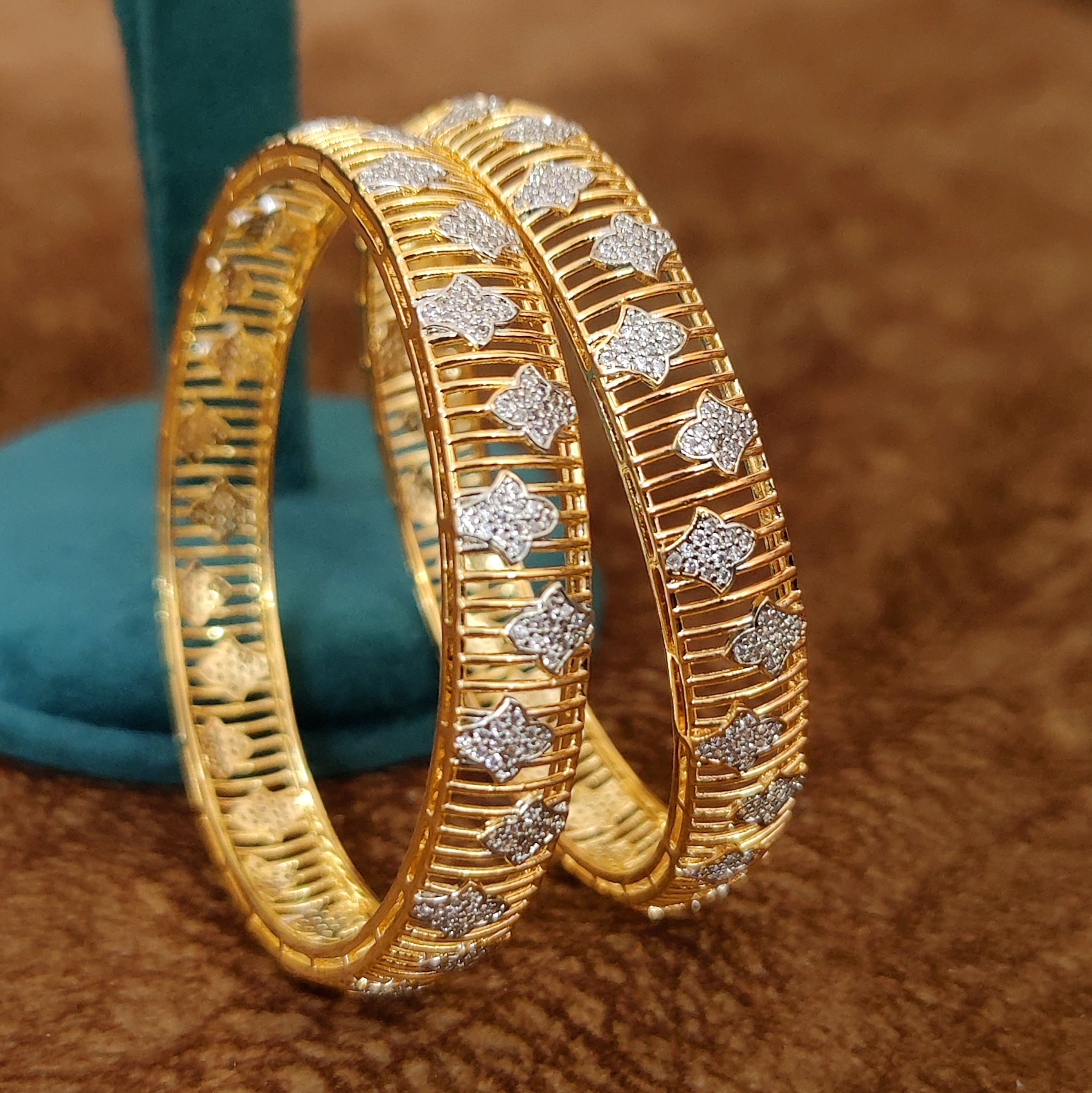 INTRICATE DESIGN DIAMOND LOOK GOLD PLATED BANGLES