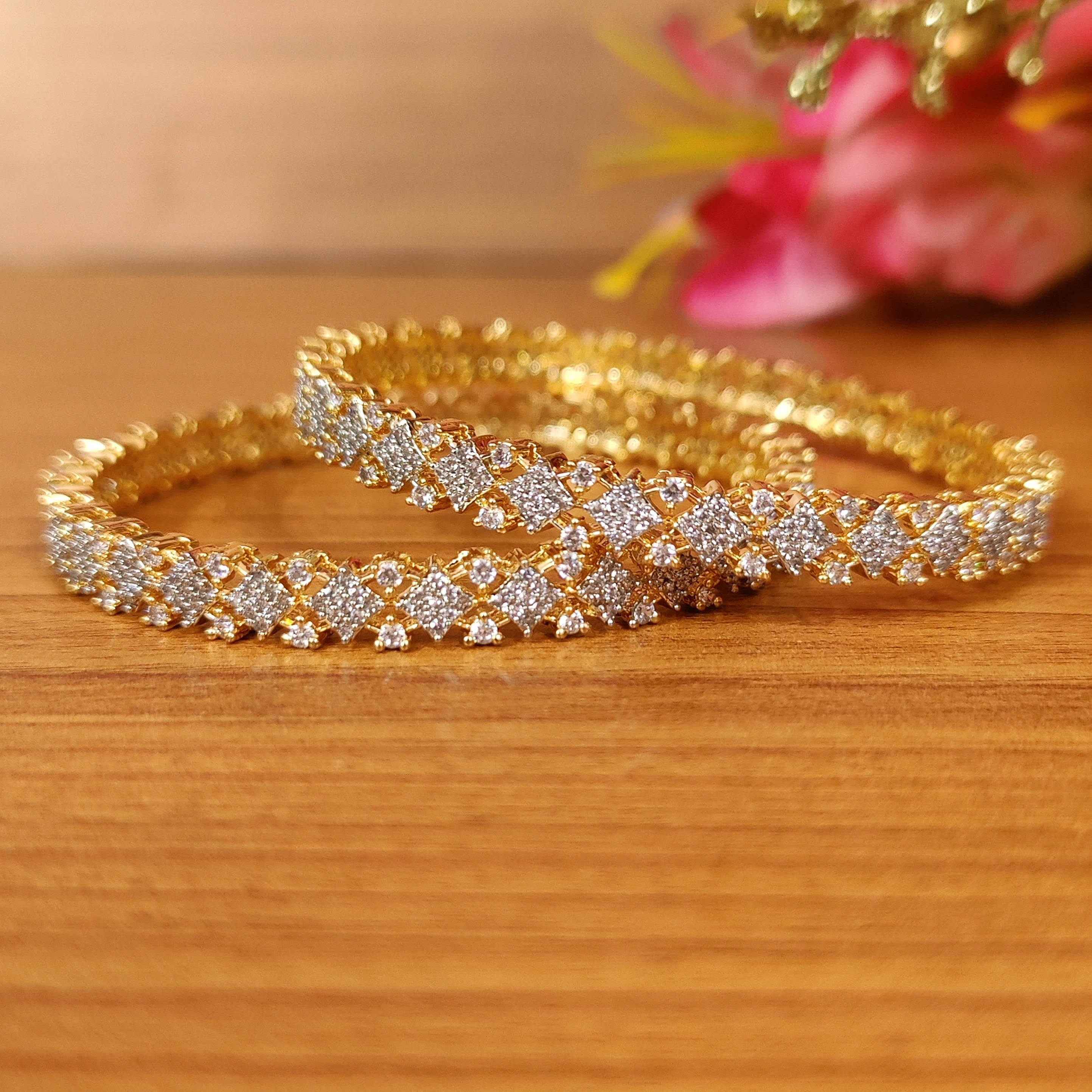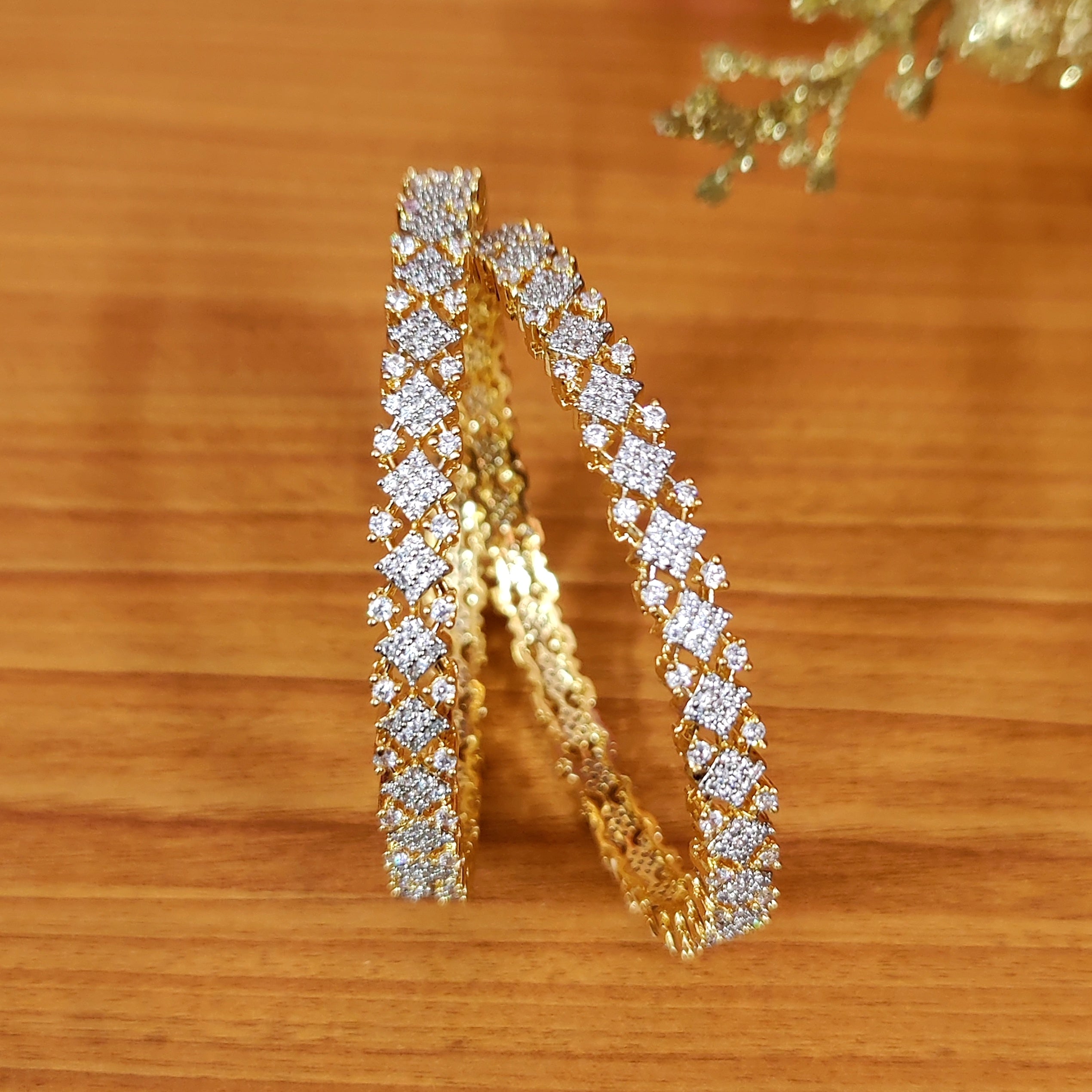 INTRICATE DIAMOND PATTERN CZ GOLD PLATED BANGLES