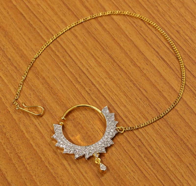 DIAMOND LOOK GOLD PLATED CZ BRIDAL NOSE RING