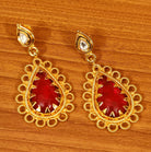 KUNDAN LOOK GOLD PLATED PEAR SHAPED PINK EARRINGS