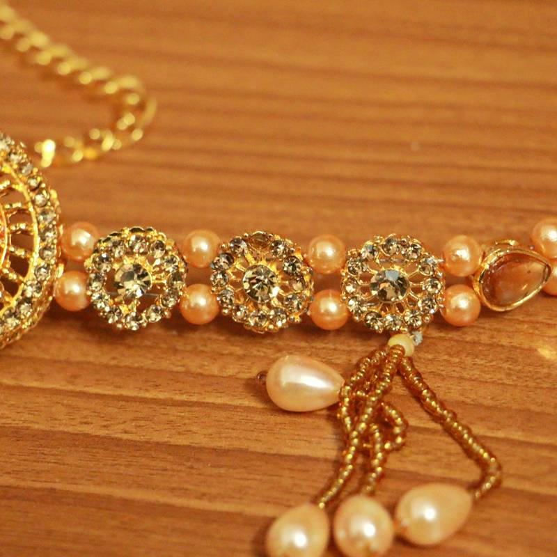This Waist Belt Is Handcrafted In Copper Alloy With Fine Zircon & Polki Work Of Fine Quality , The Waist Belt Is Plated With 18kt Nickle Free Gold Plating Which Gives It A Real Look .