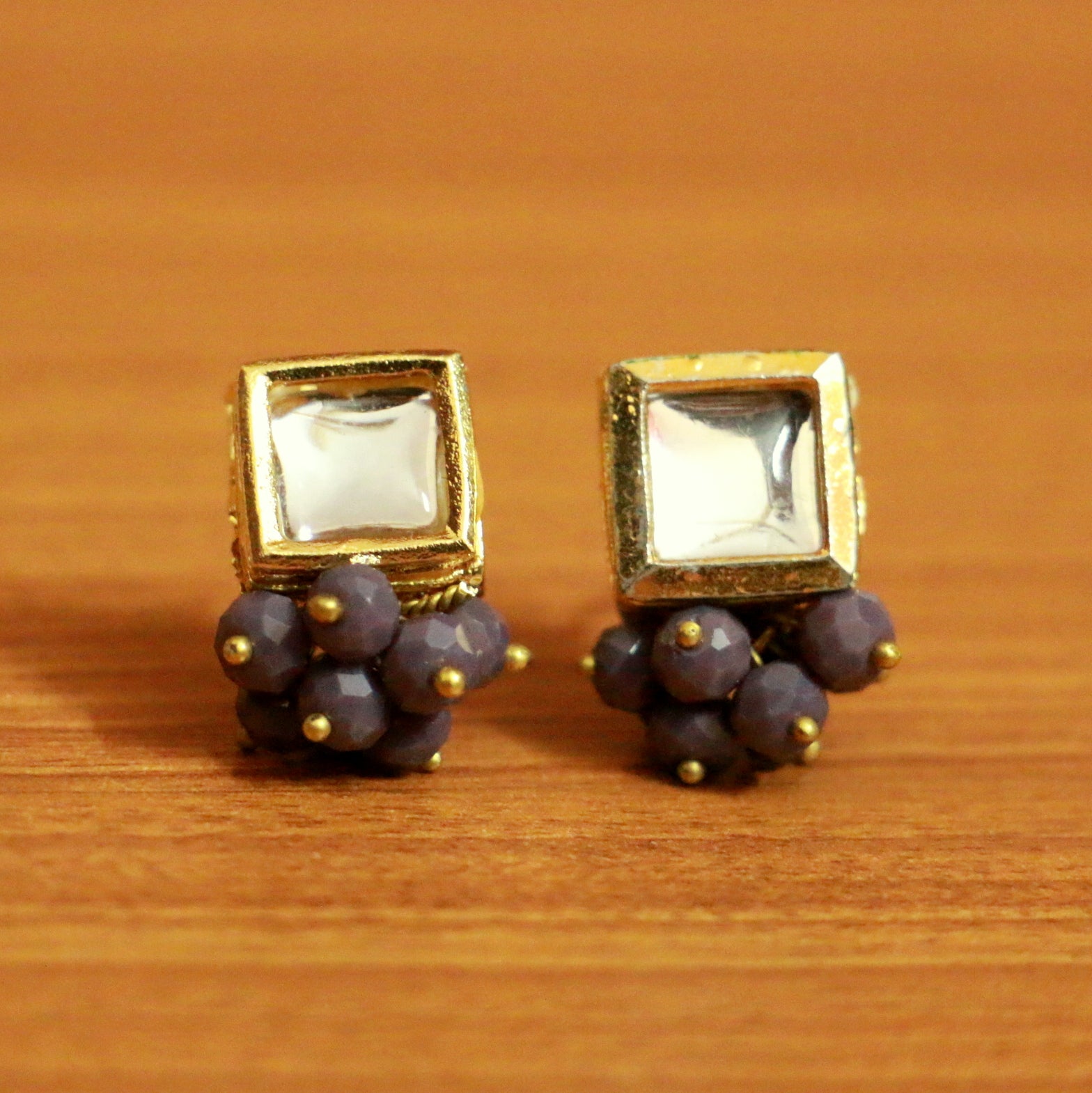These crystal beaded kundan earrings are handcrafted imitation crystal beads of very fine quality. The earrings are plated in gold rhodium and are very light in weight.