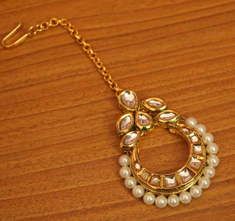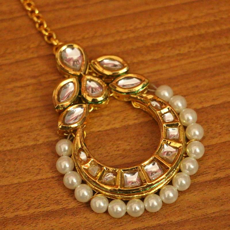 Kundan meenakari elegant pearl maang tikka