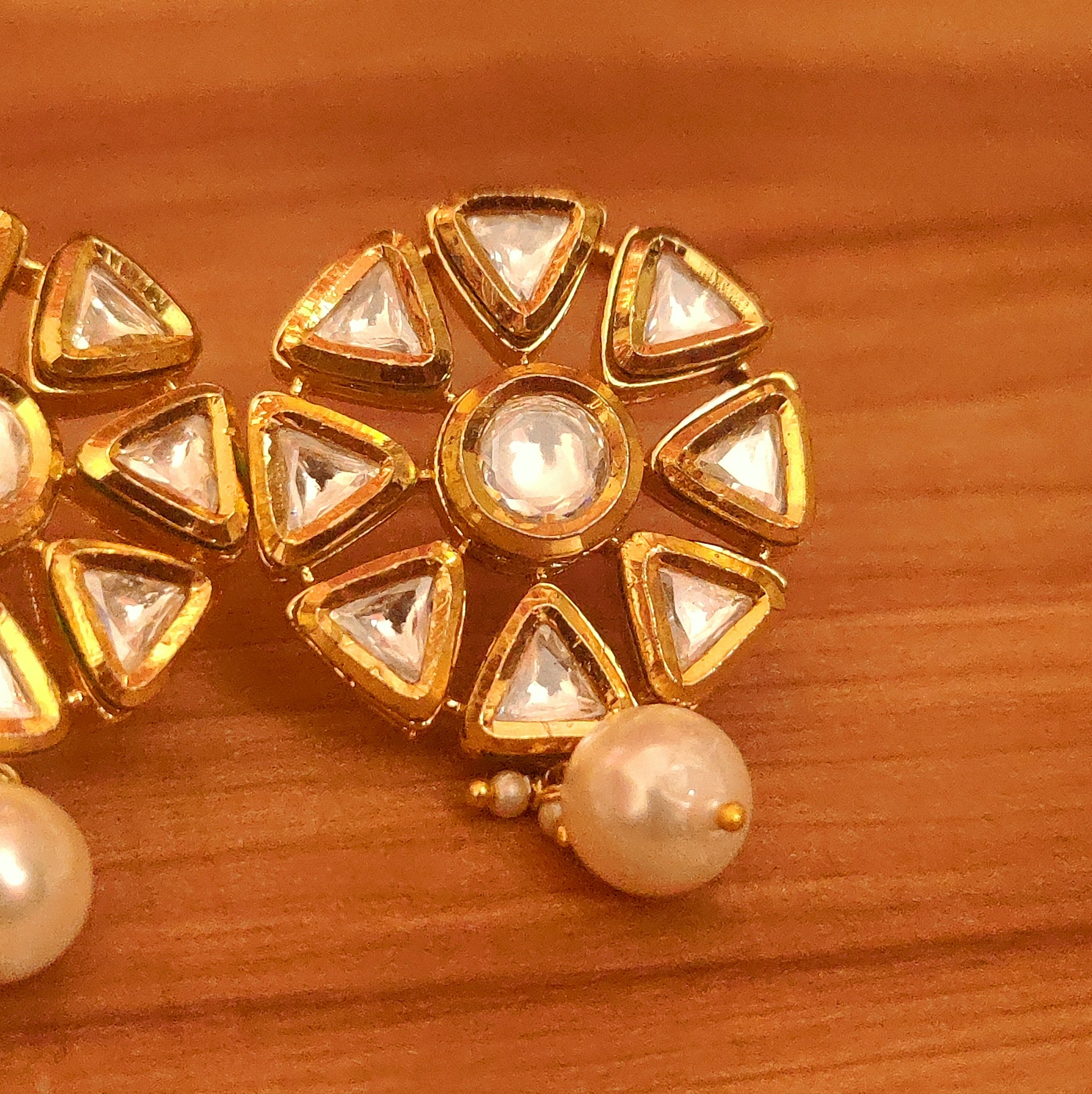 KUNDAN MEENAKARI GOLD PLATED PEARL BIG EARRINGS