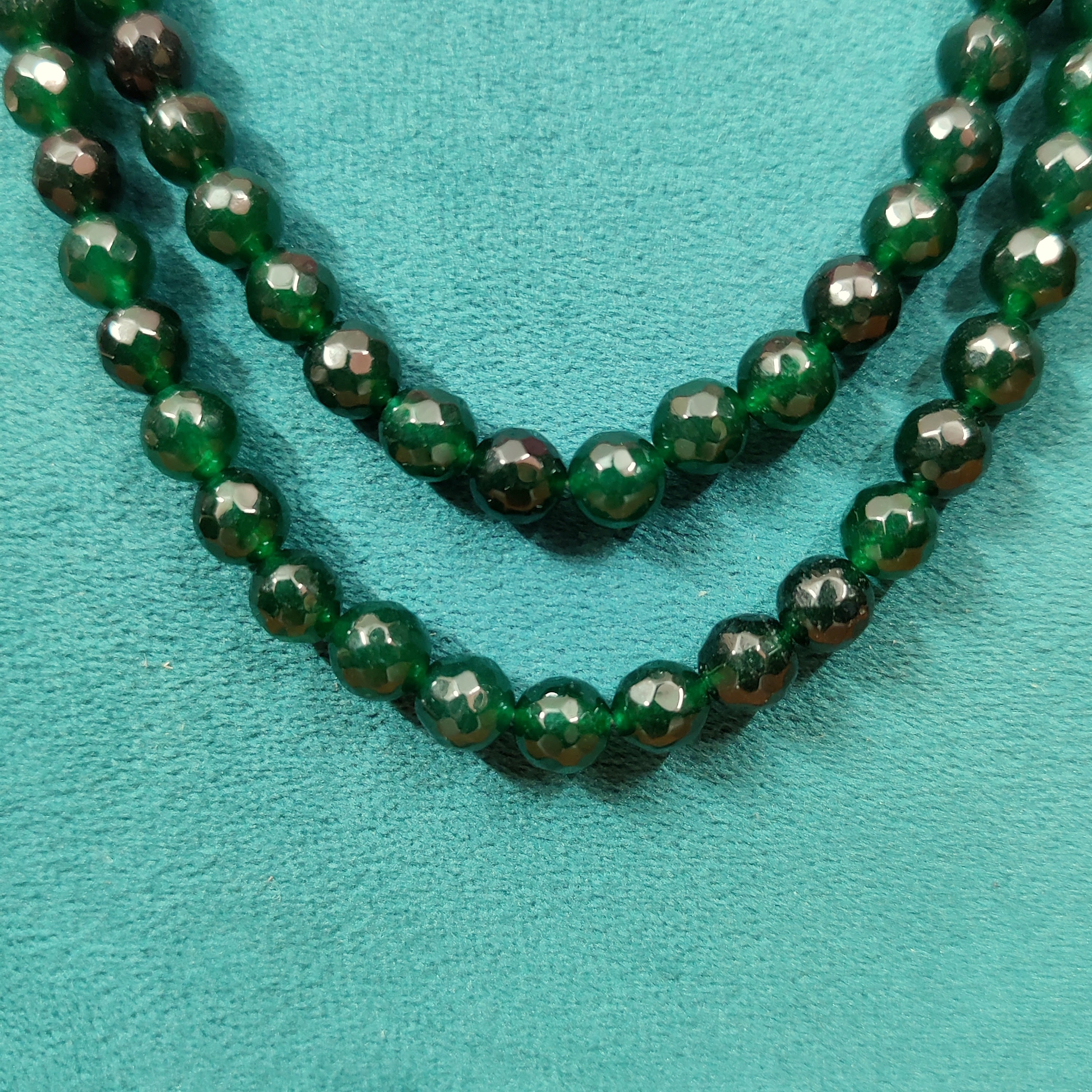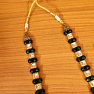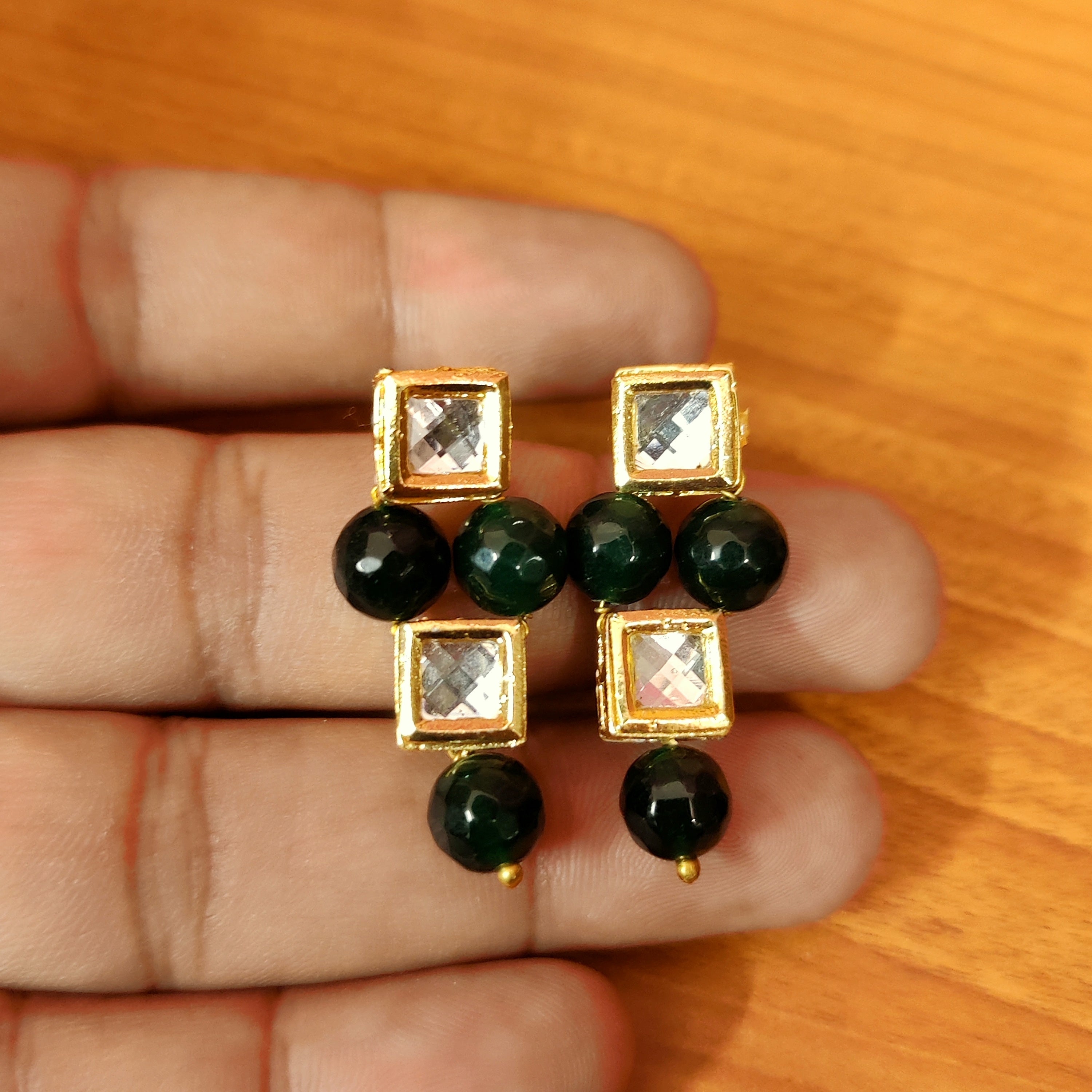 This exquisite KUNDAN MEENAKARI GREEN ONYX ETHNIC NECKLACE SET features kundan and a graceful combination of green onyx beads, infusing an elegant yet exotic touch to your look. Revel in the timeless beauty and show off your unique style with this luxurious piece.