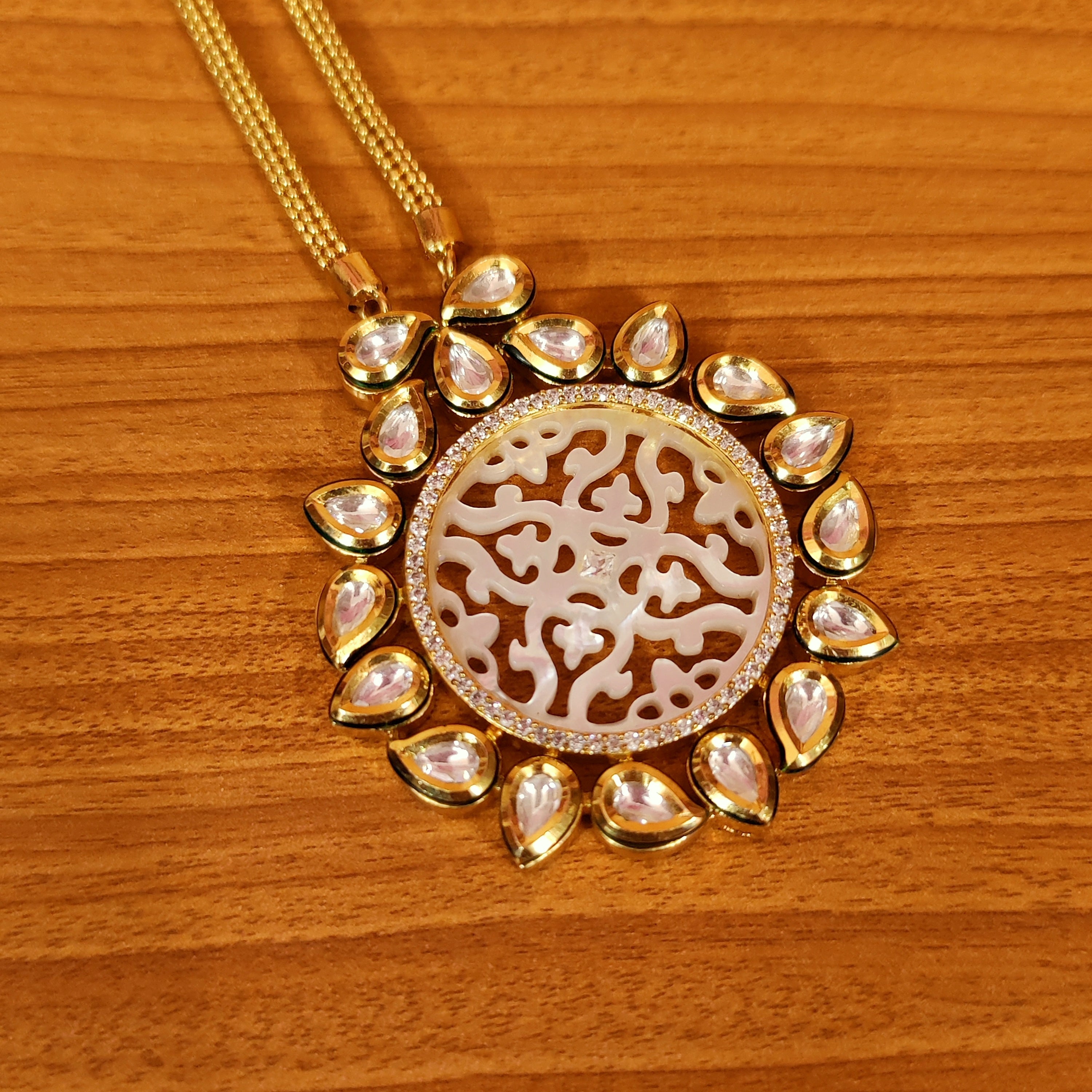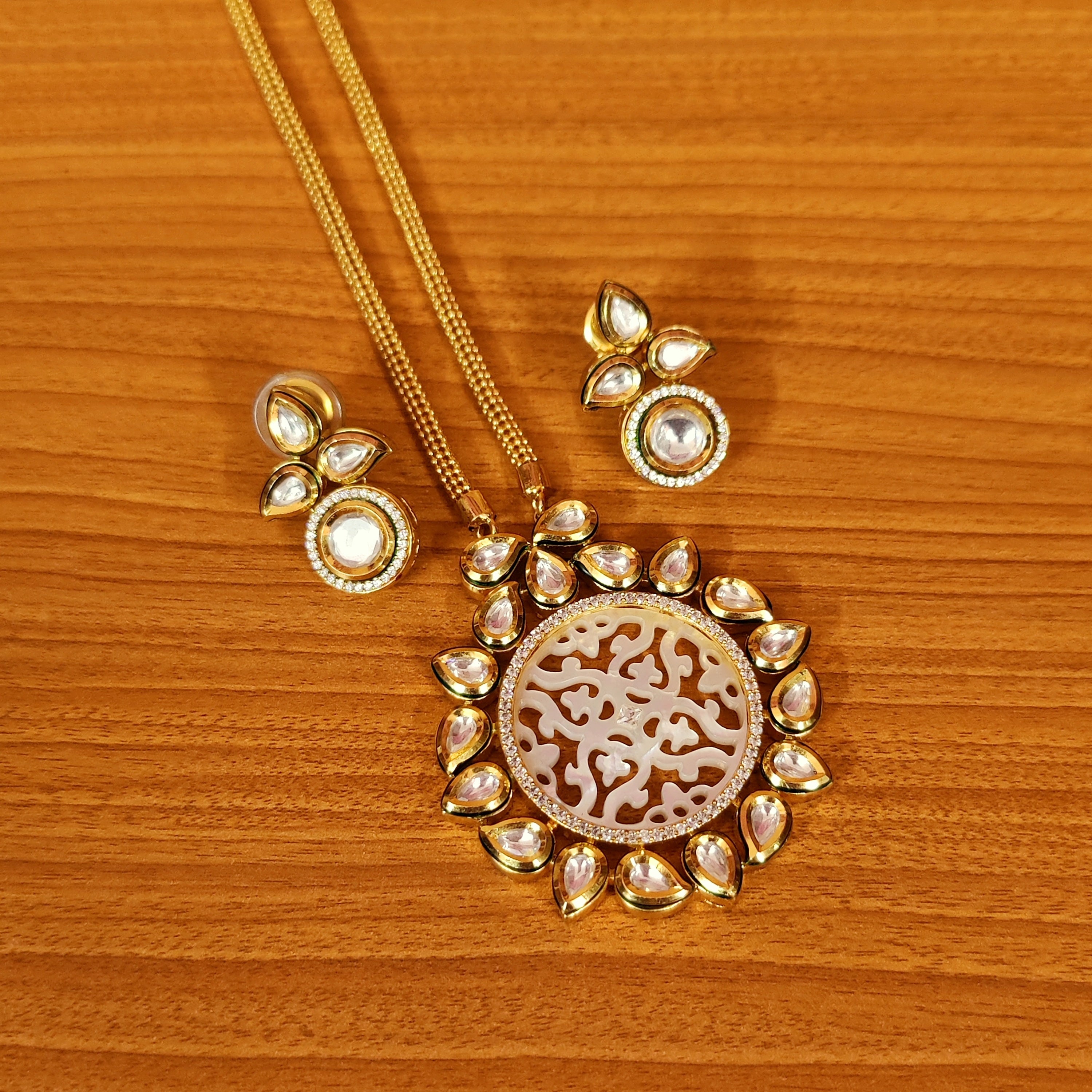 KUNDAN POLKI & CZ STUDDED MOTHER OF PEARL PENDANT SET