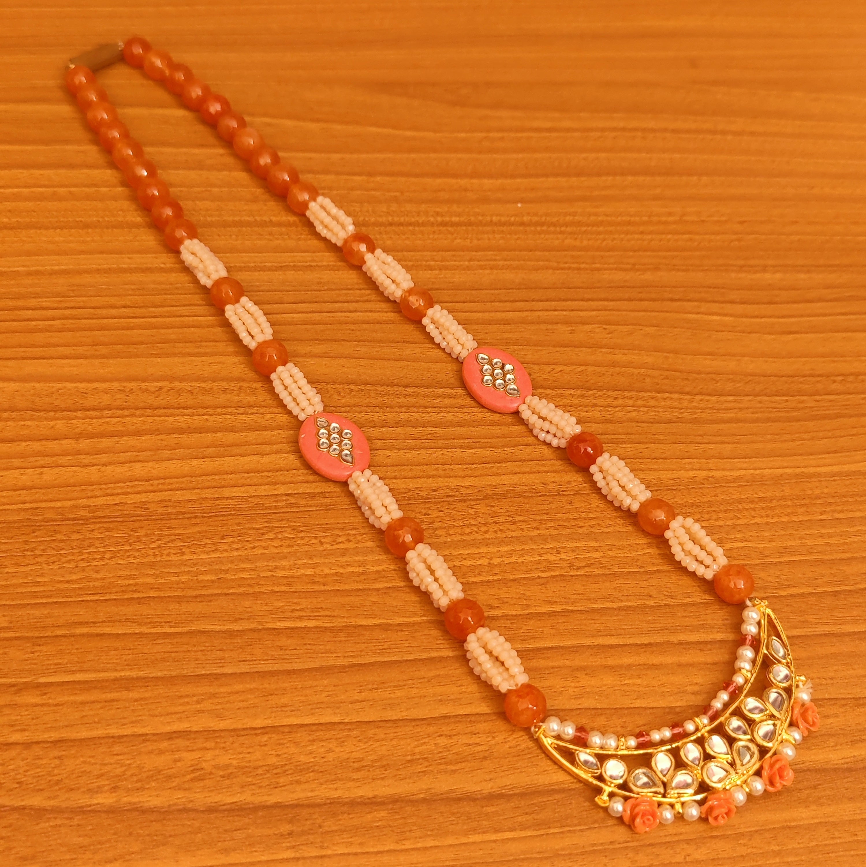 KUNDAN MEENAKARI ORANGE ONYX NECKLACE