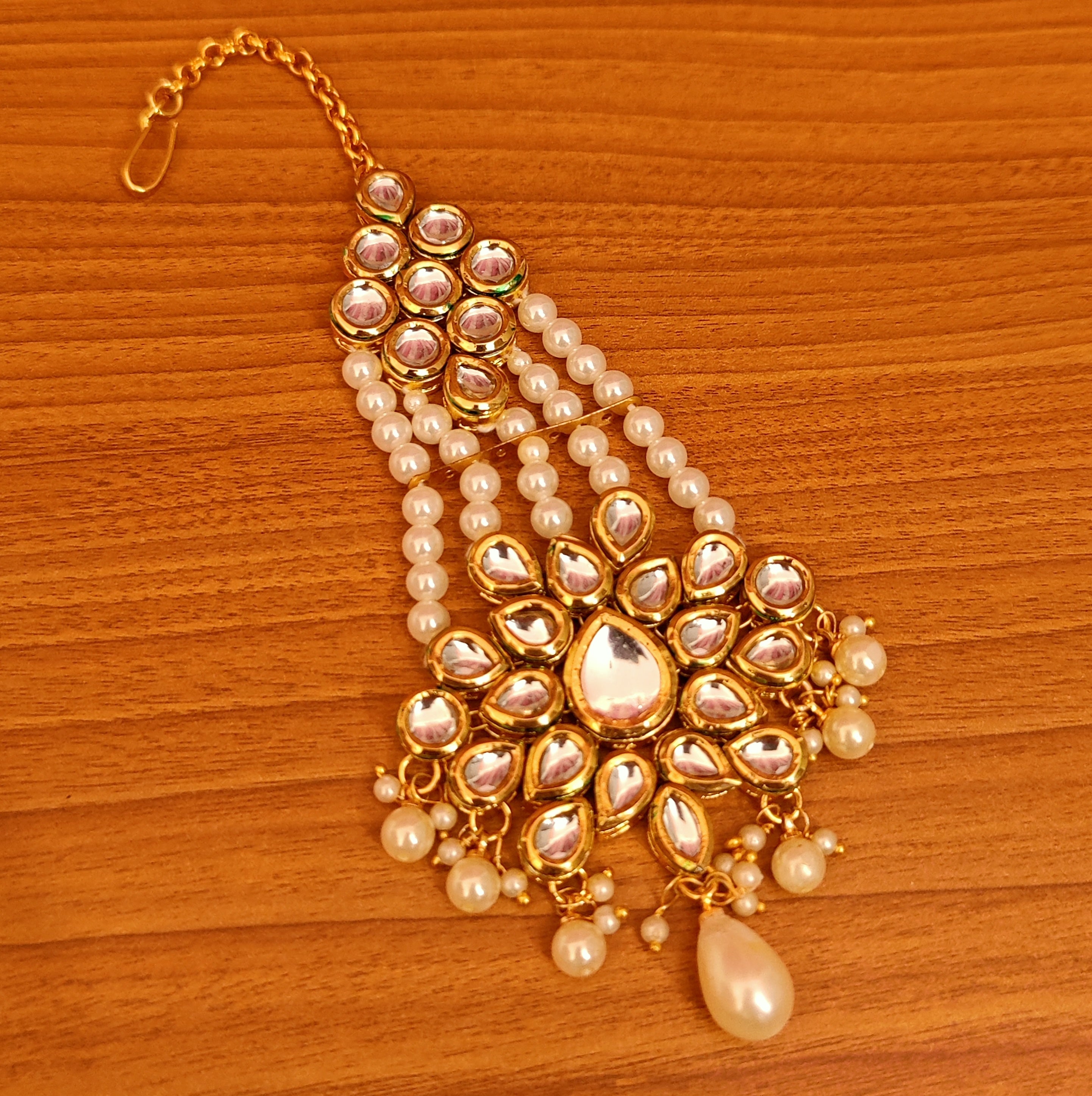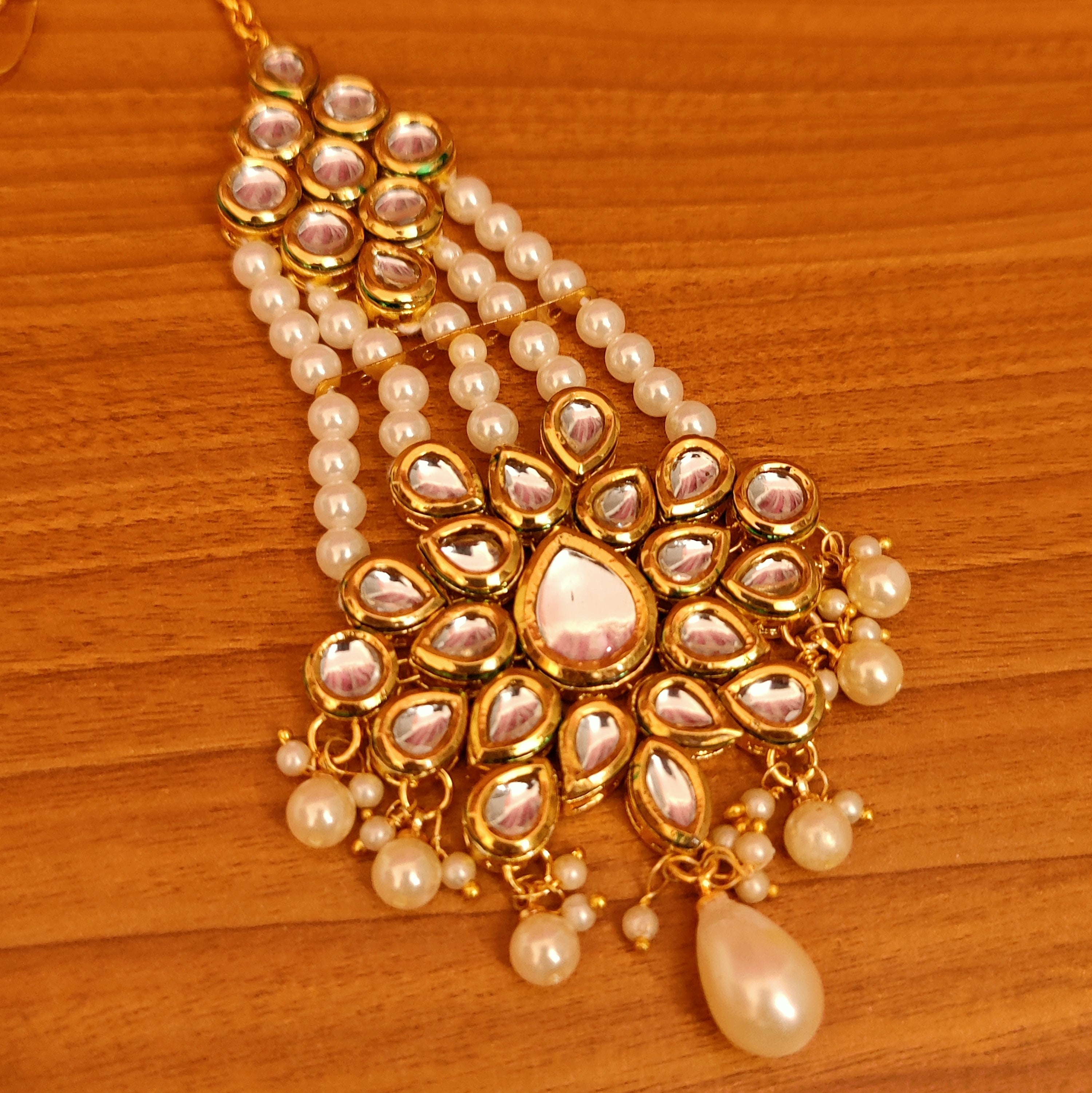 - Material: Brass Alloy, Kundan, Pearls, Yellow Gold