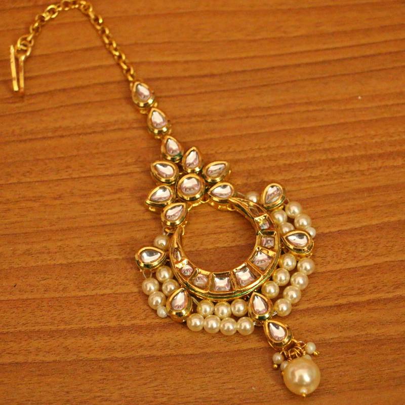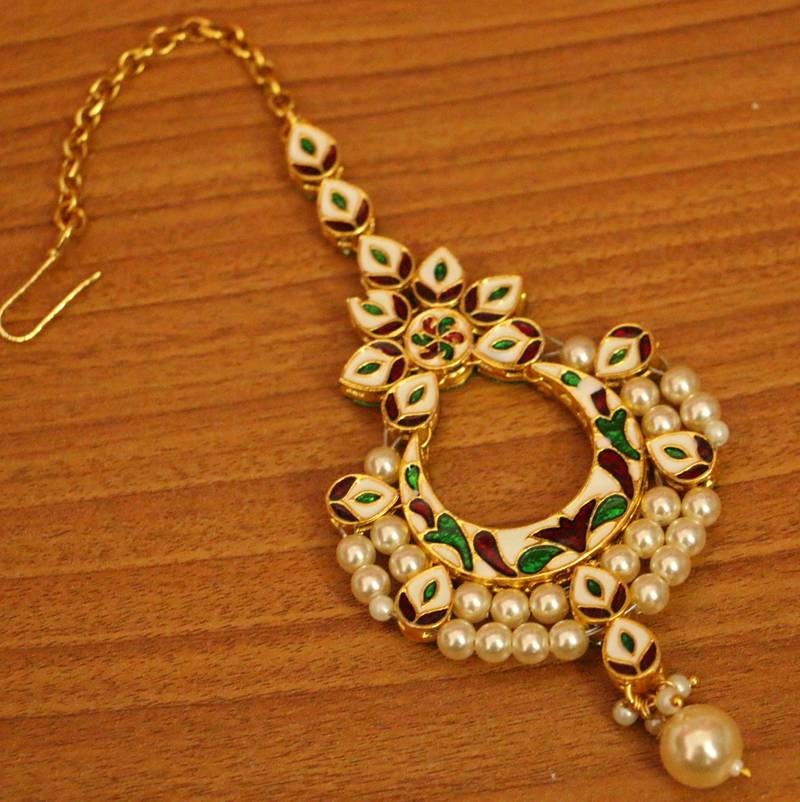 Kundan Meenakari Pearl Wedding Maang Tikka