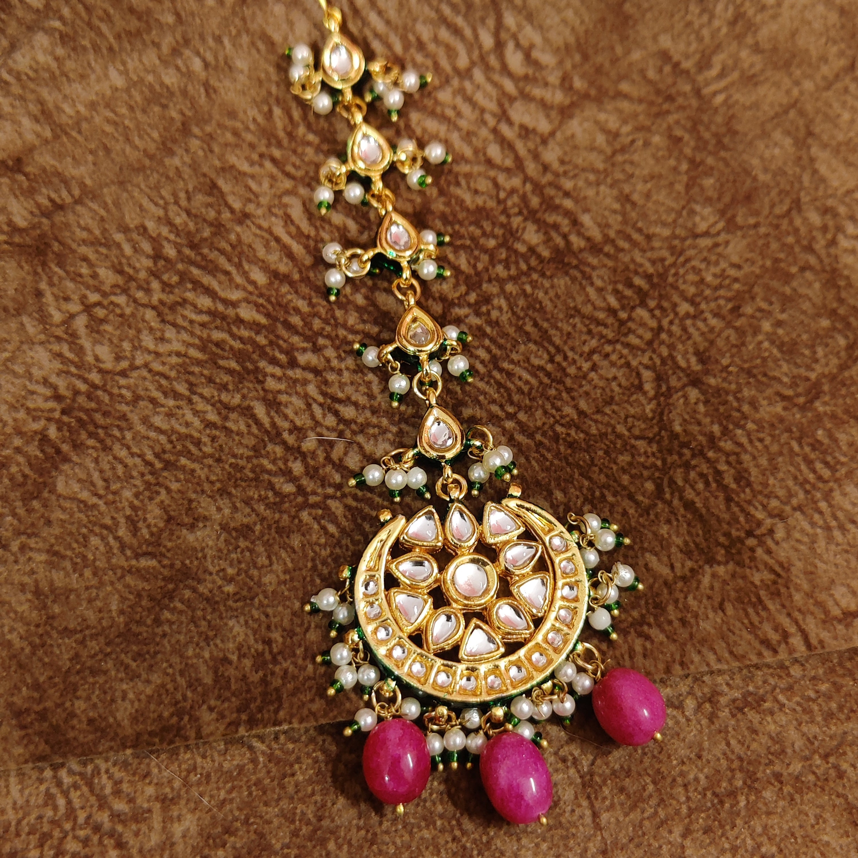 KUNDAN MEENAKARI RANI COLOUR MAANG TIKKA