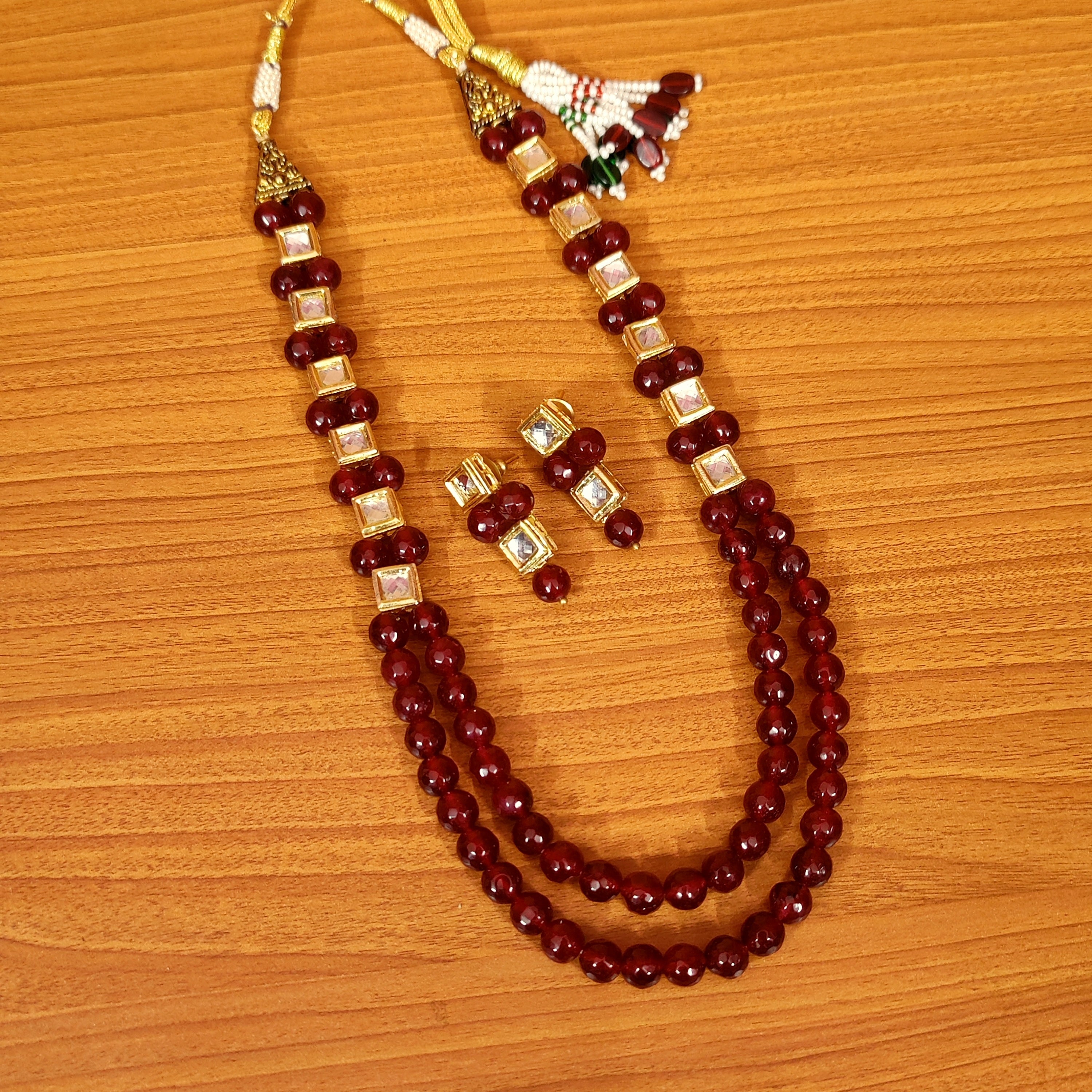 KUNDAN MEENAKARI RUBY COLOUR ETHNIC NECKLACE SET