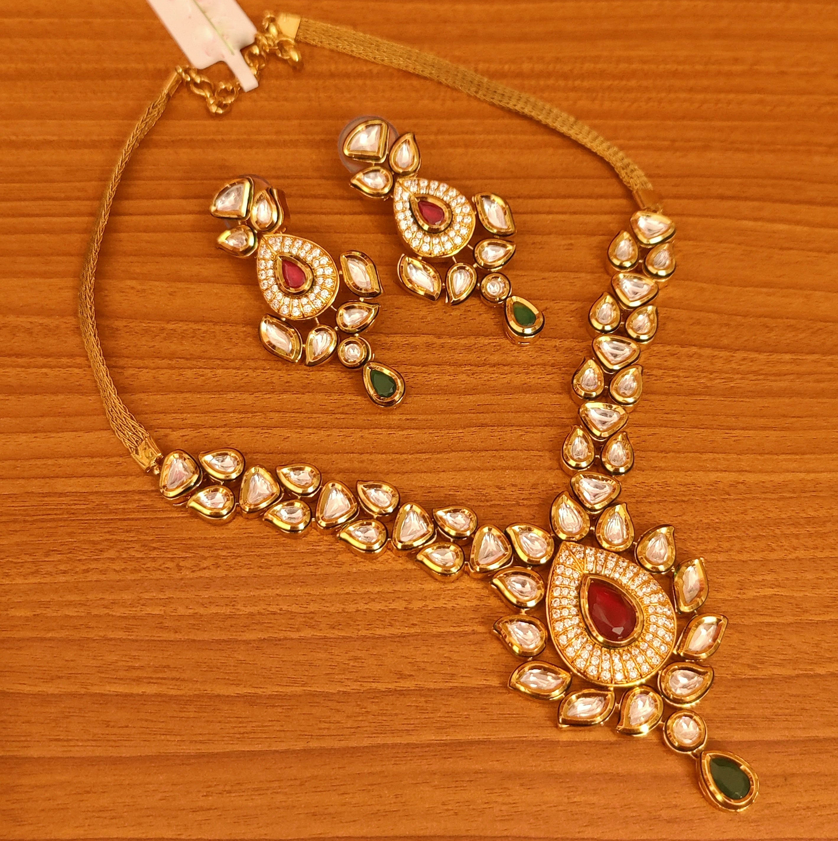UNCUT KUNDAN POLKI RUBY & EMERALD STONE WEDDING NECKLACE SET