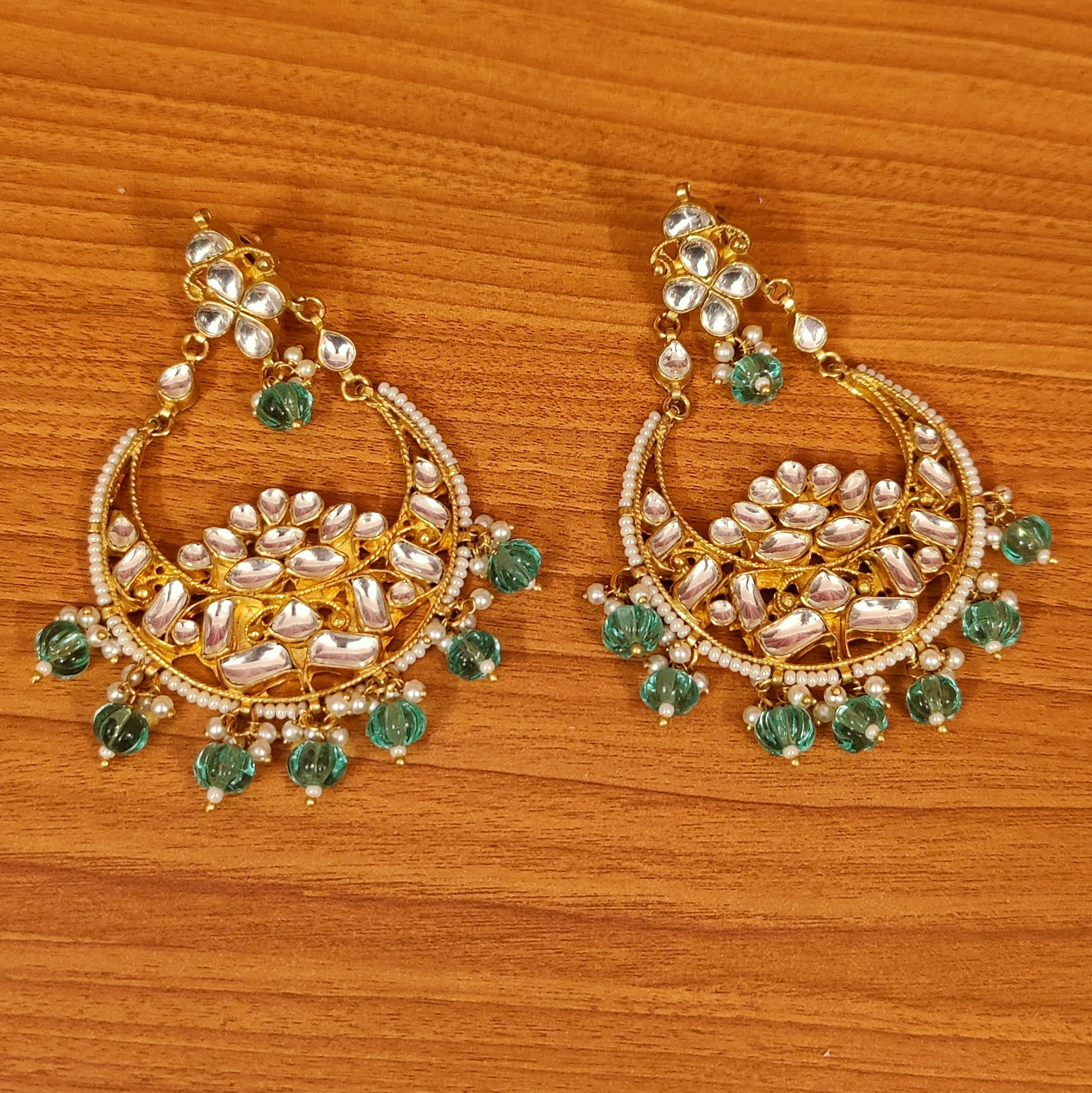 KUNDAN POLKI ANTIQUE LOOK CHANDBALI EARRINGS