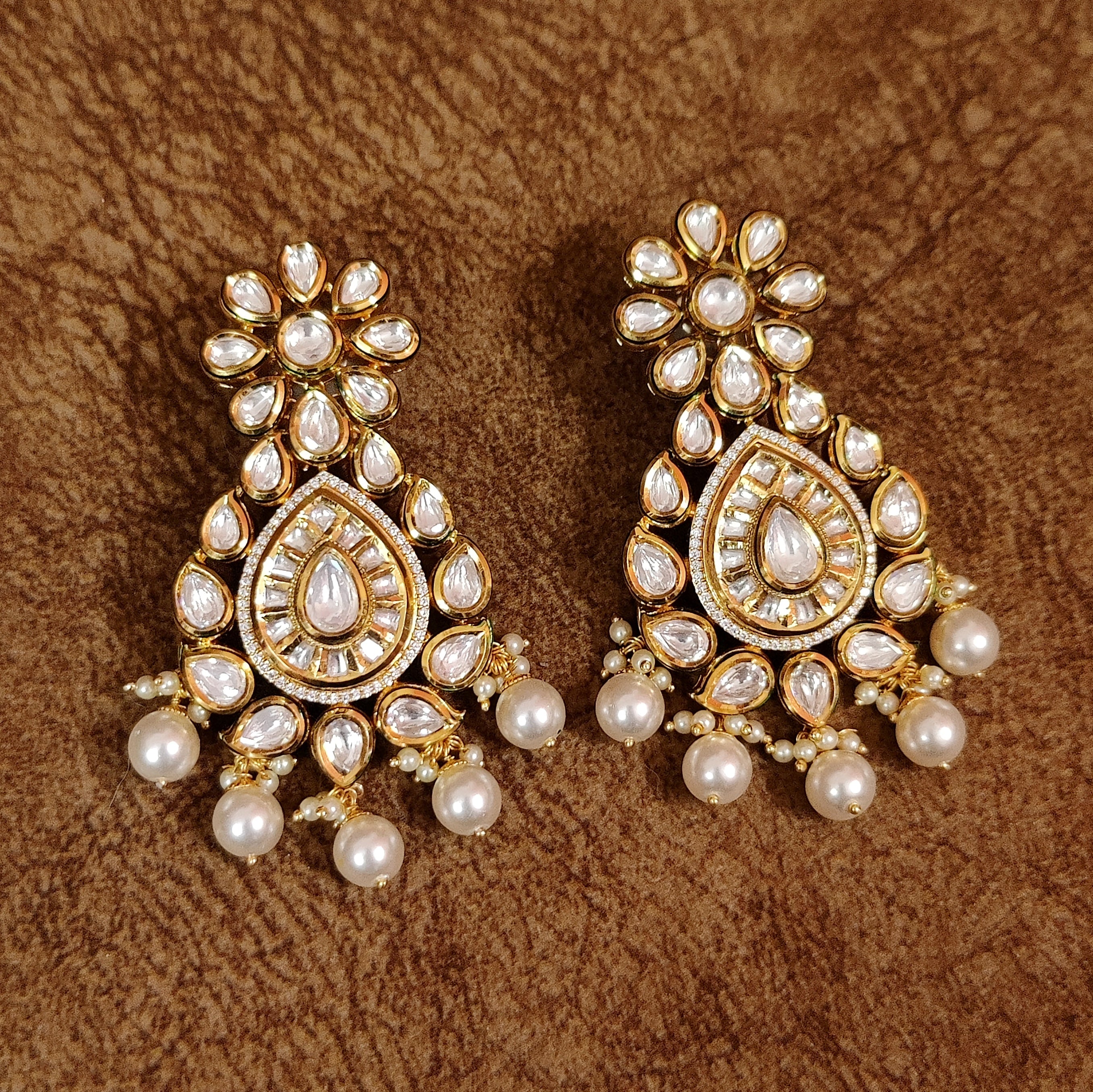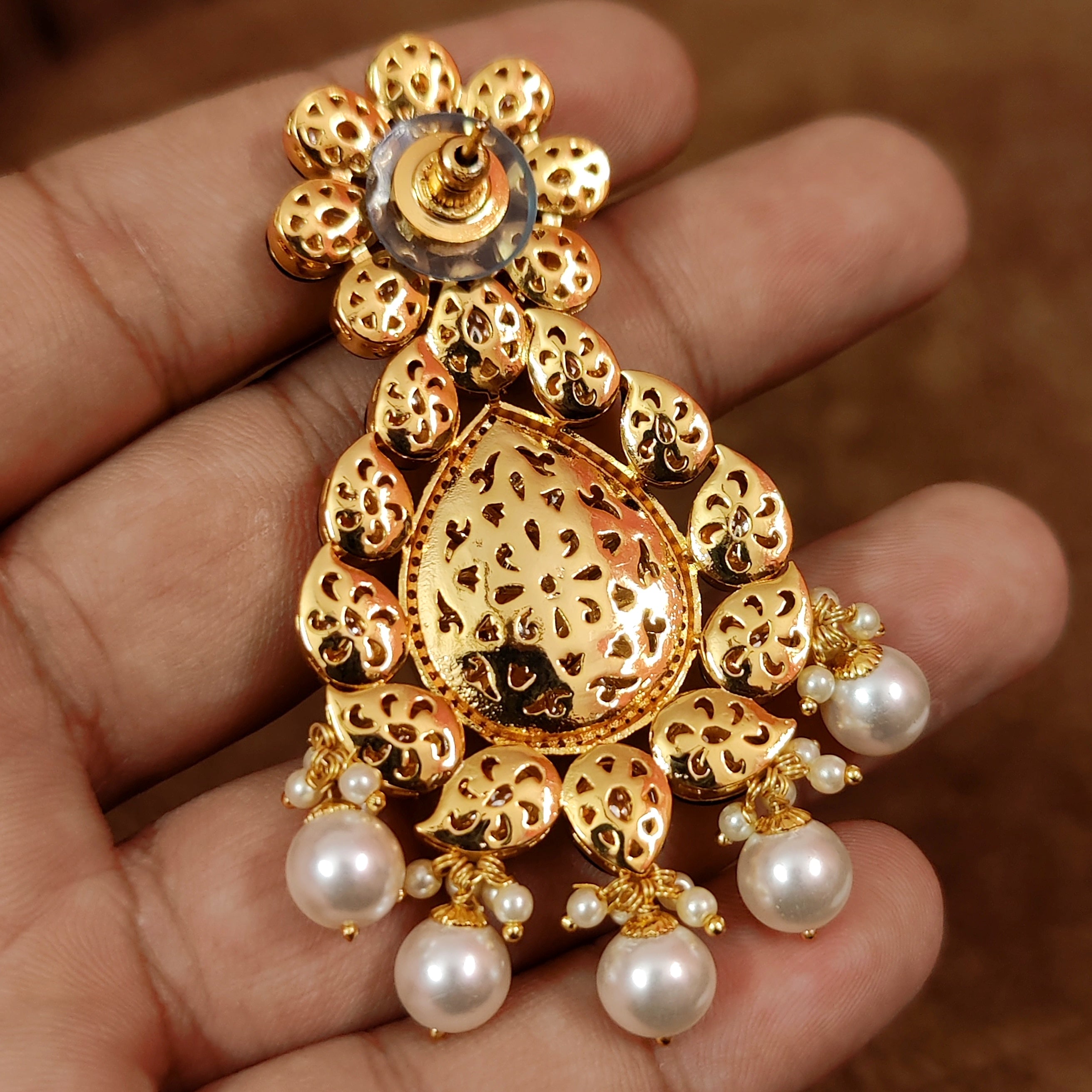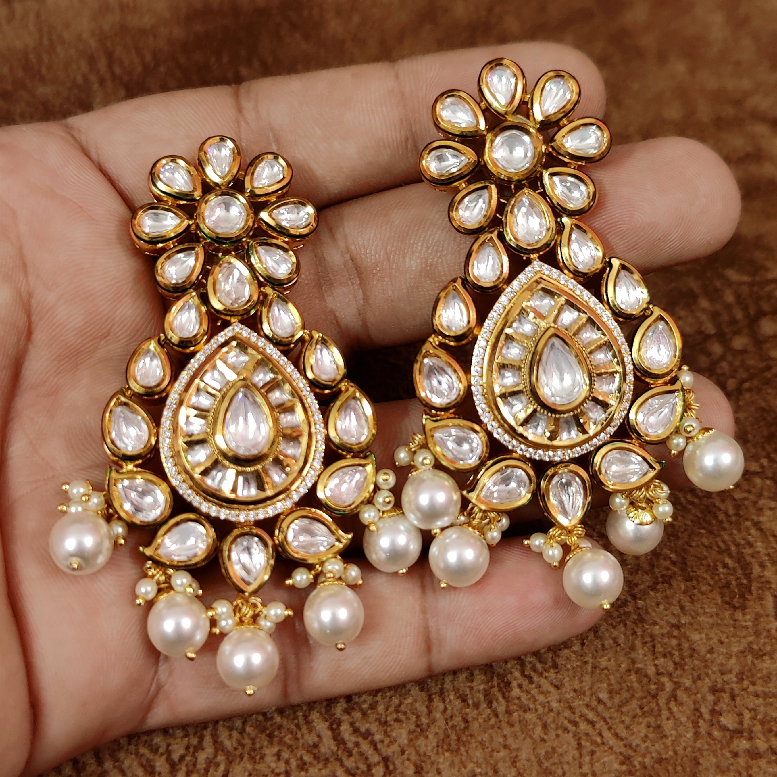 KUNDAN POLKI & CZ FUSION PEARL DANGLERS