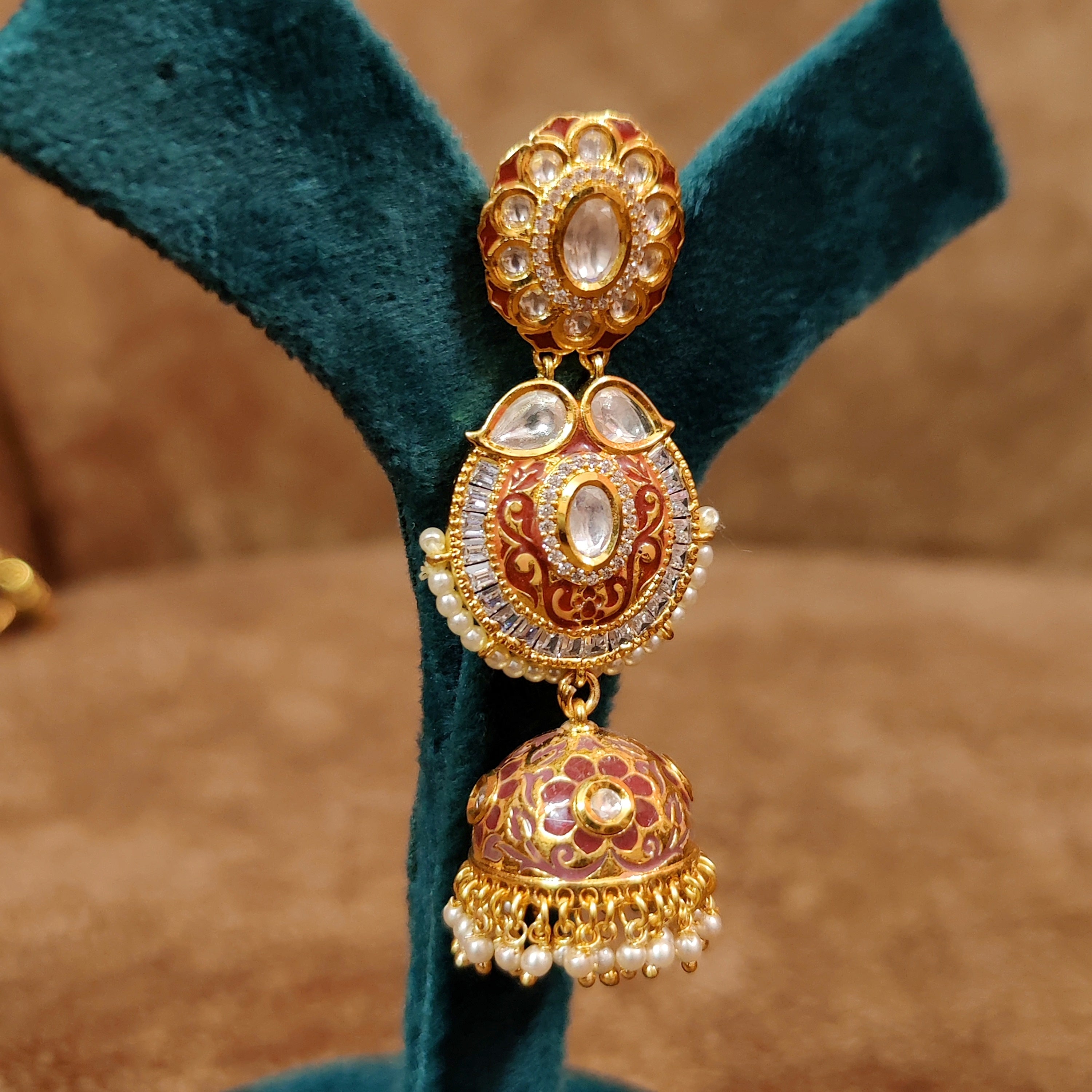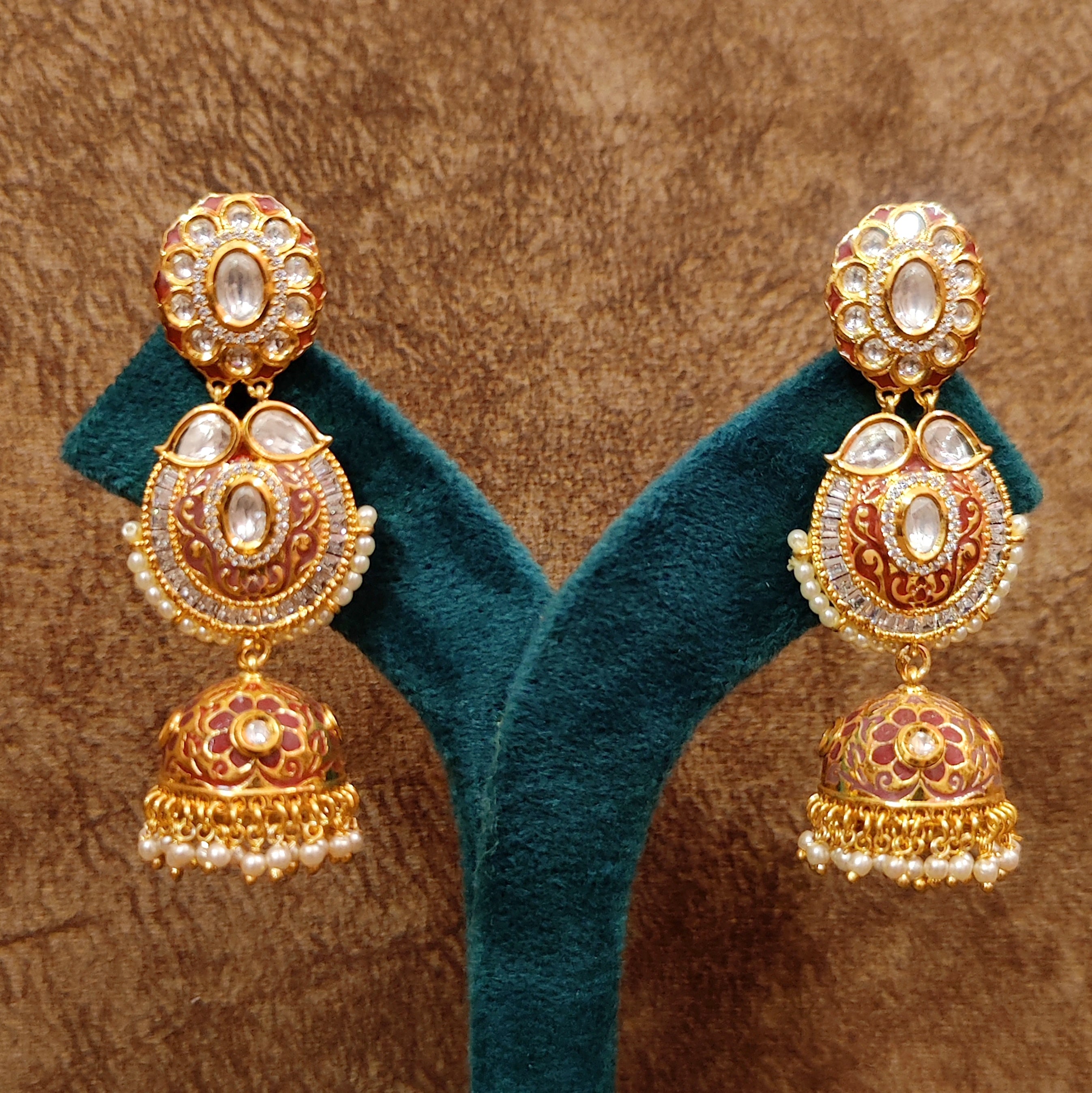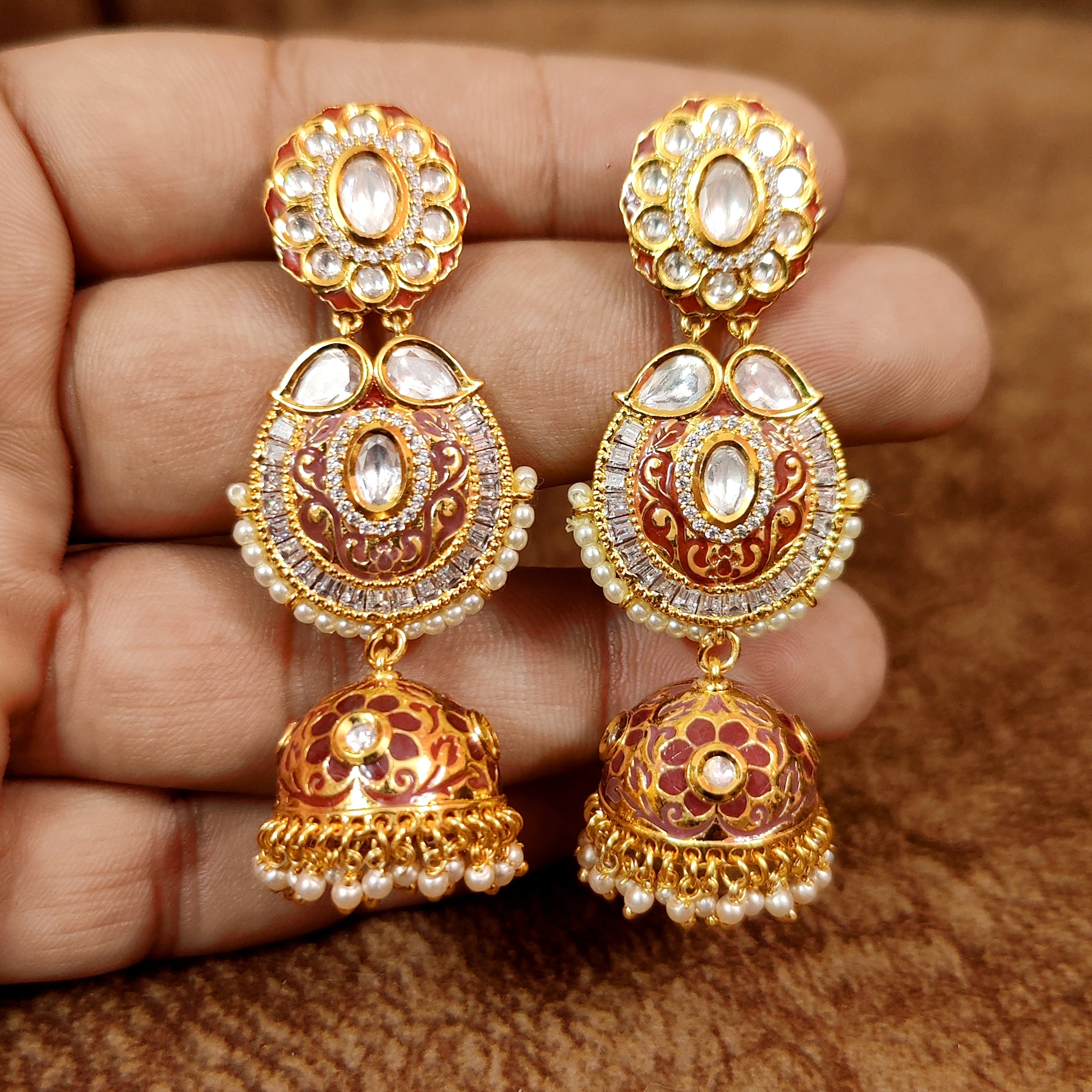 KUNDAN POLKI GHERU MMENAKARI CZ STUDDED WEDDING JHUMKA'S